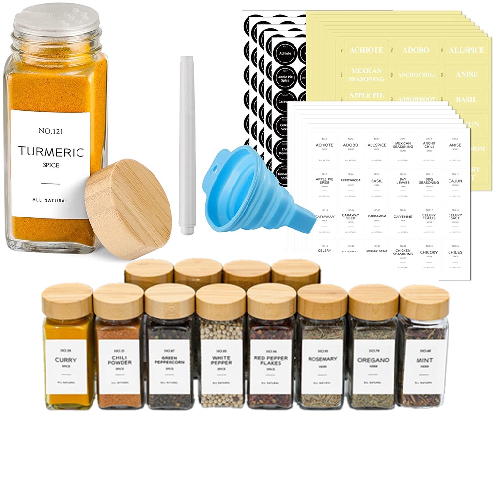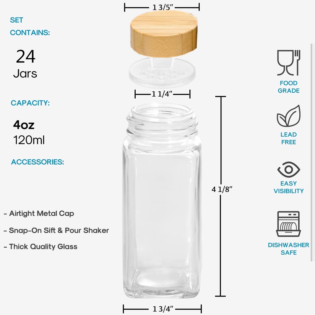 24 pieces Labeled Spice Jars Empty Square Spice Containers Airtight Wood Caps Kitchen Condiment Storage