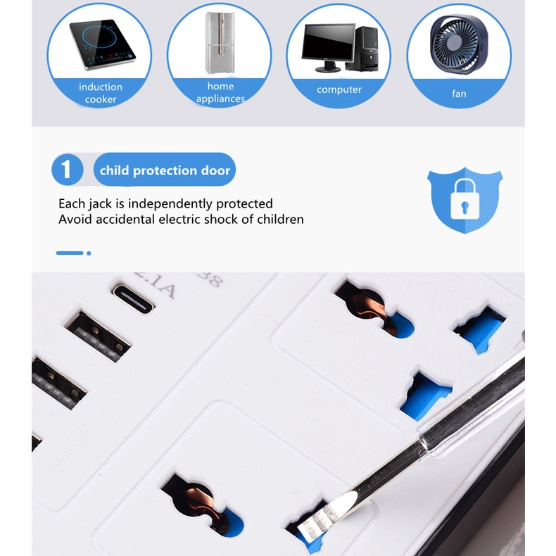 2400W Power Socket With USB Multifunctional British Standard Expansion Multi Socket Surge Protector Adapter Socket