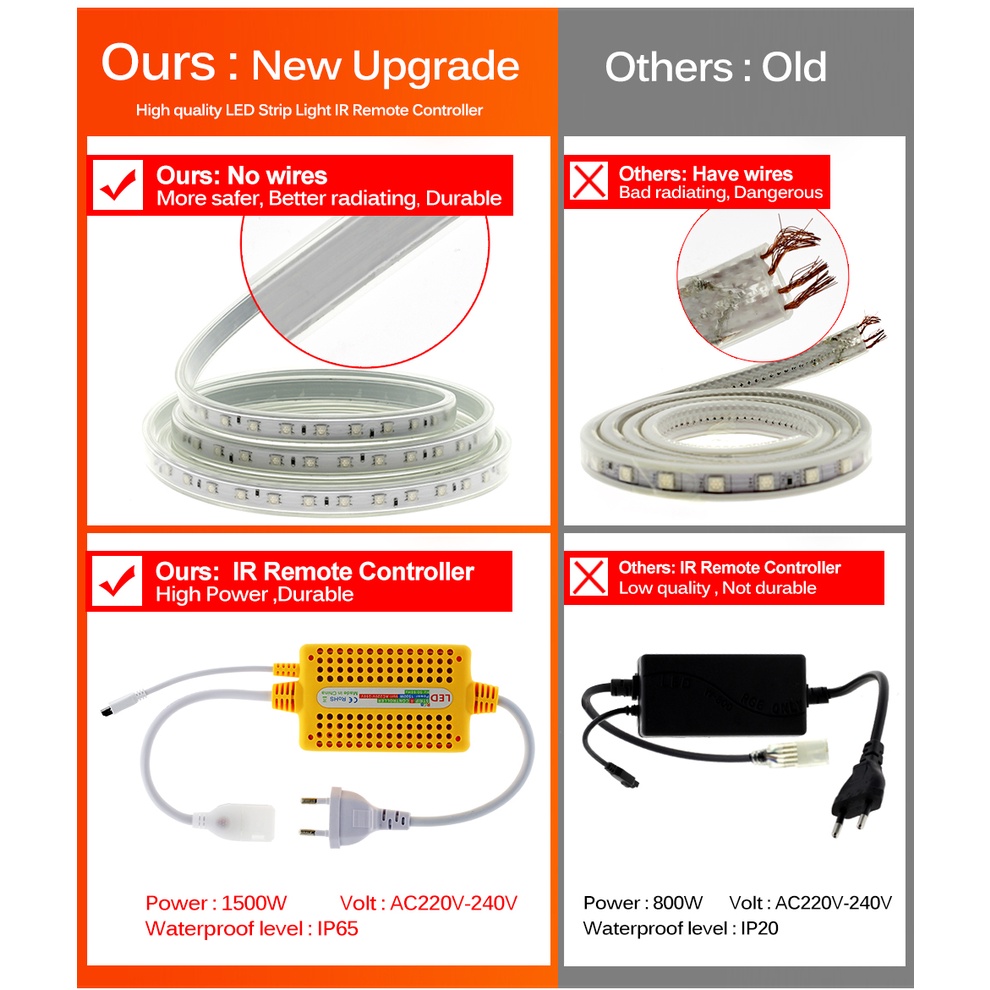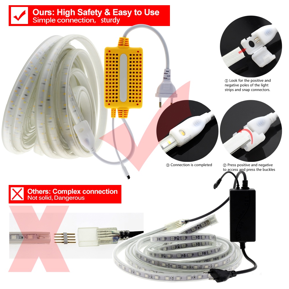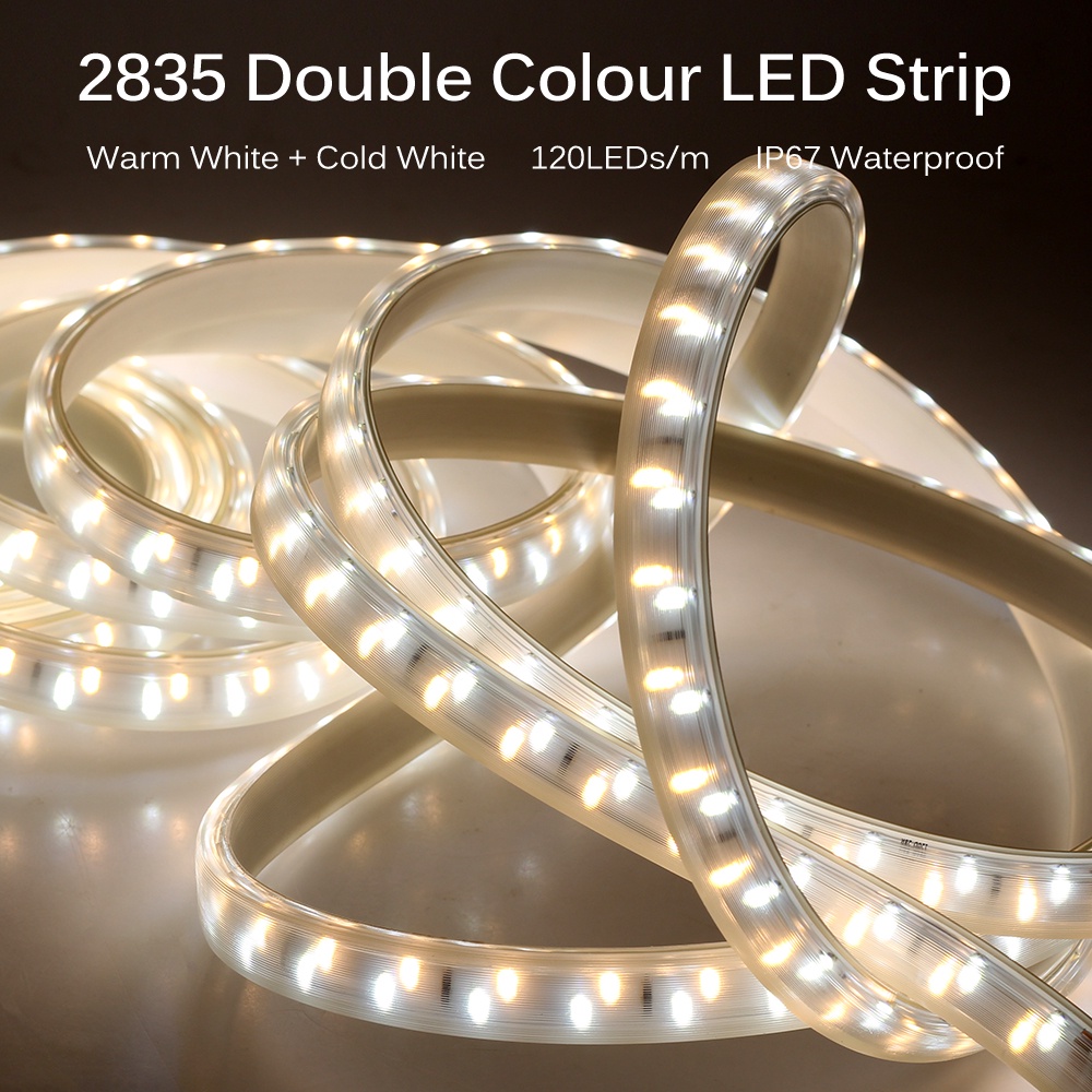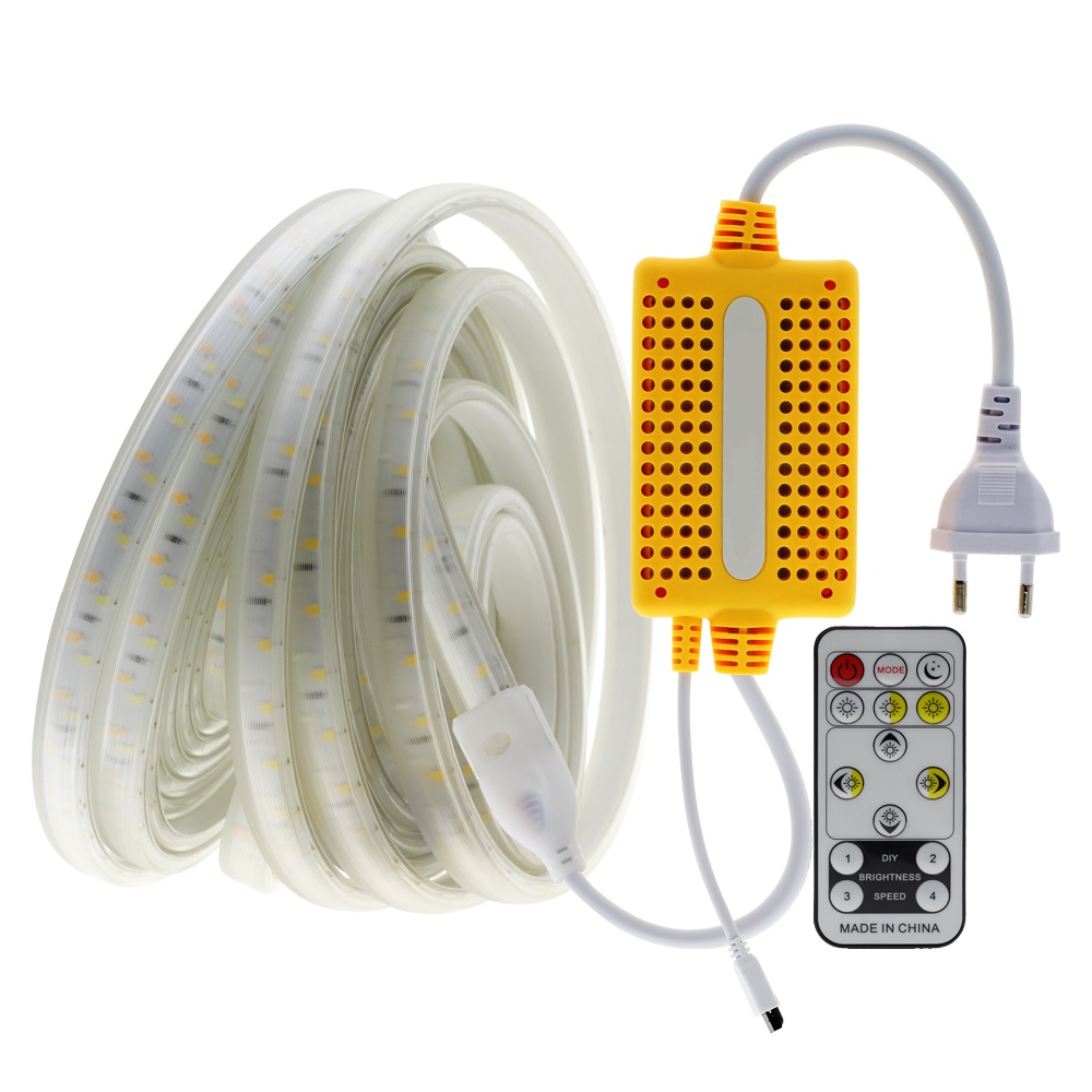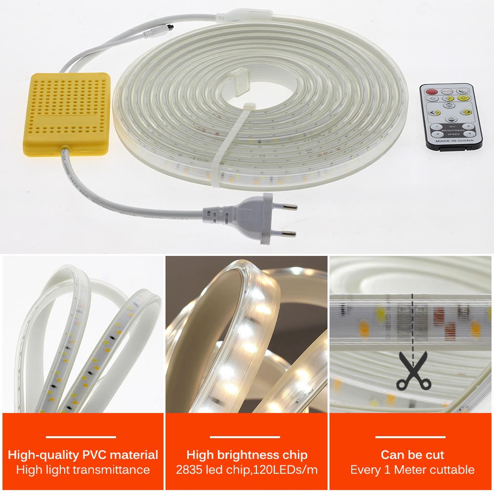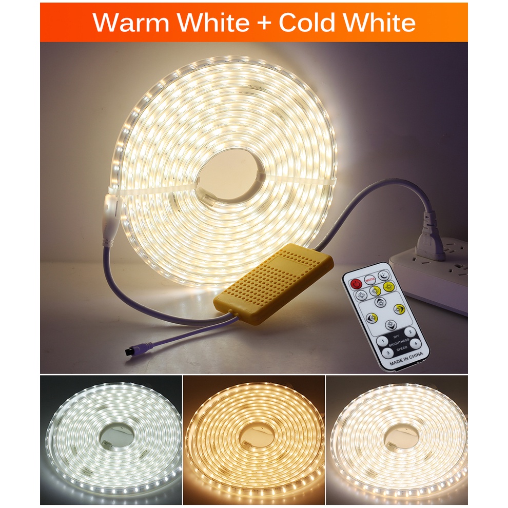 240V 1M-15M Tricolor LED Strip Light Waterproof Outdoor LED Light Warm White + Natural White + White Light Strip with Controller Plug