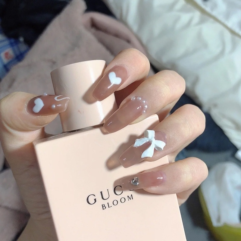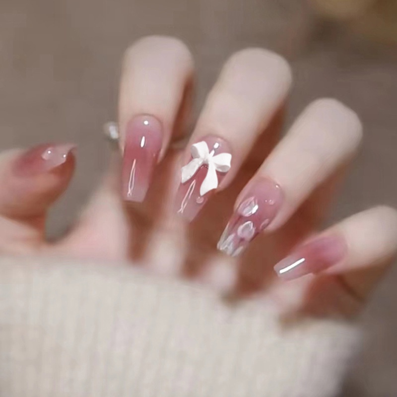 24pcs Acrylic Nails Fake Nails Set with Glue False Nails Long Nail Fake Nails with Design Art Party DIY COD