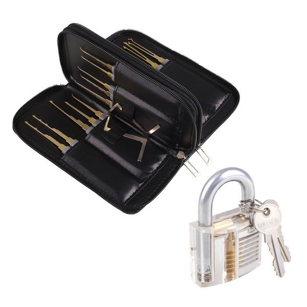 24pcs Lock Pick Set, Lock Picking Tools Clear Practice Padlock+Keys for Training Locks Lockpicking, Beginner Pro Locksmiths Extractor Tool