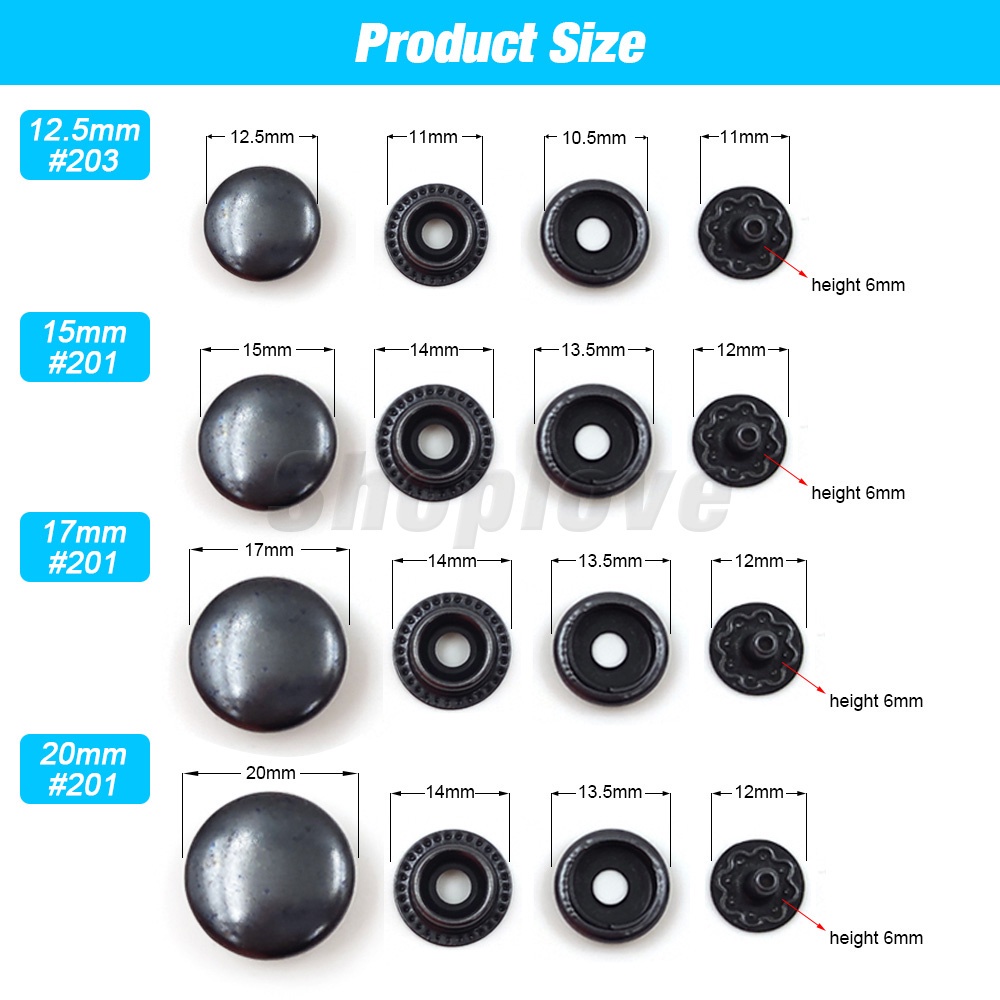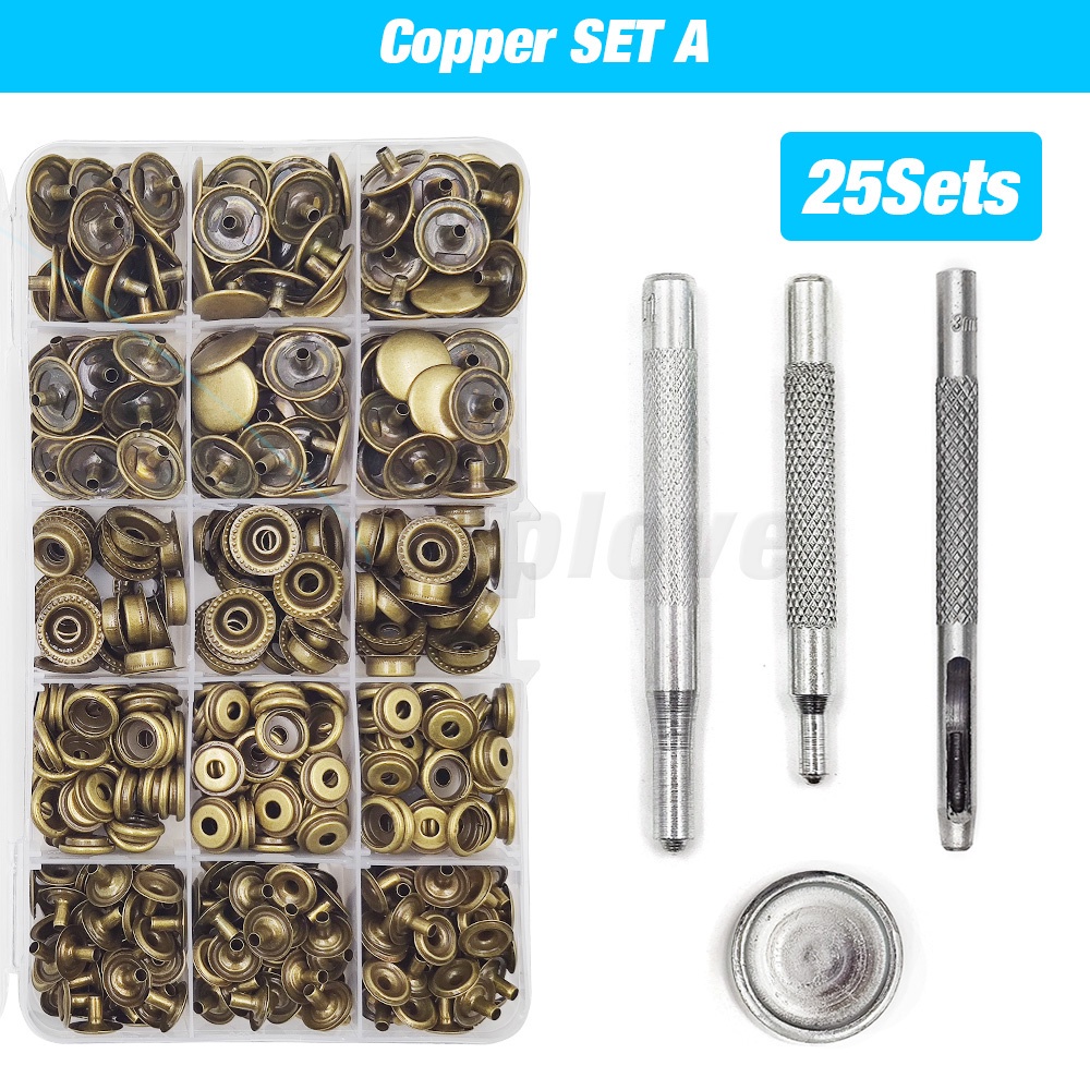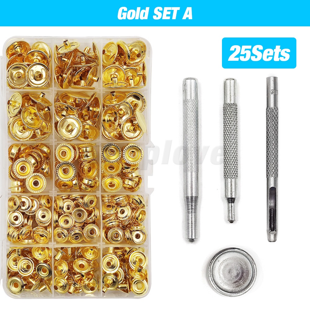 25 Sets 12.5/15/17/20mm Metal Press Stud Snap Button Popper Fastener With 4 Installation Tools Kit For Clothes Garment Bags Shoes Leathercraft