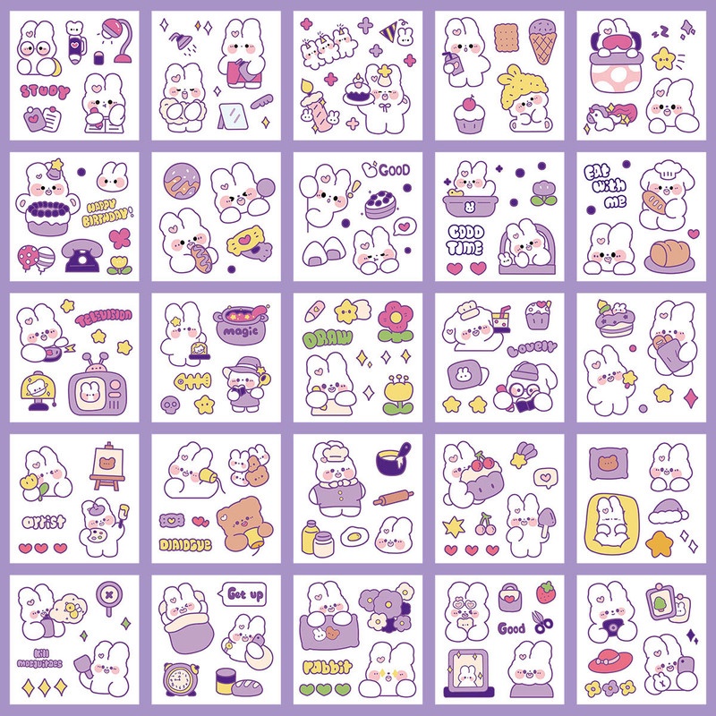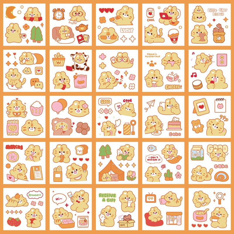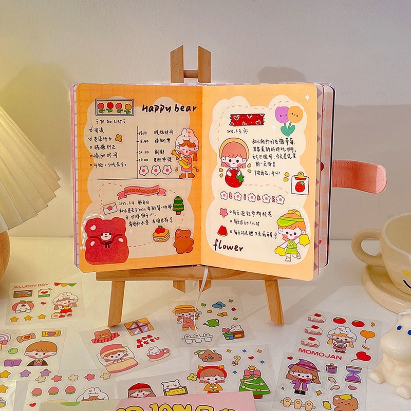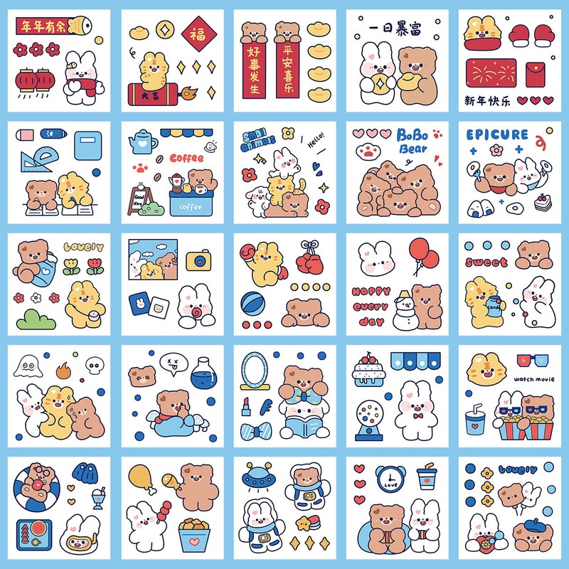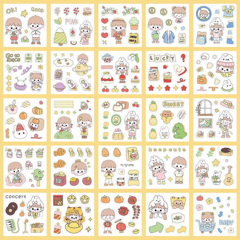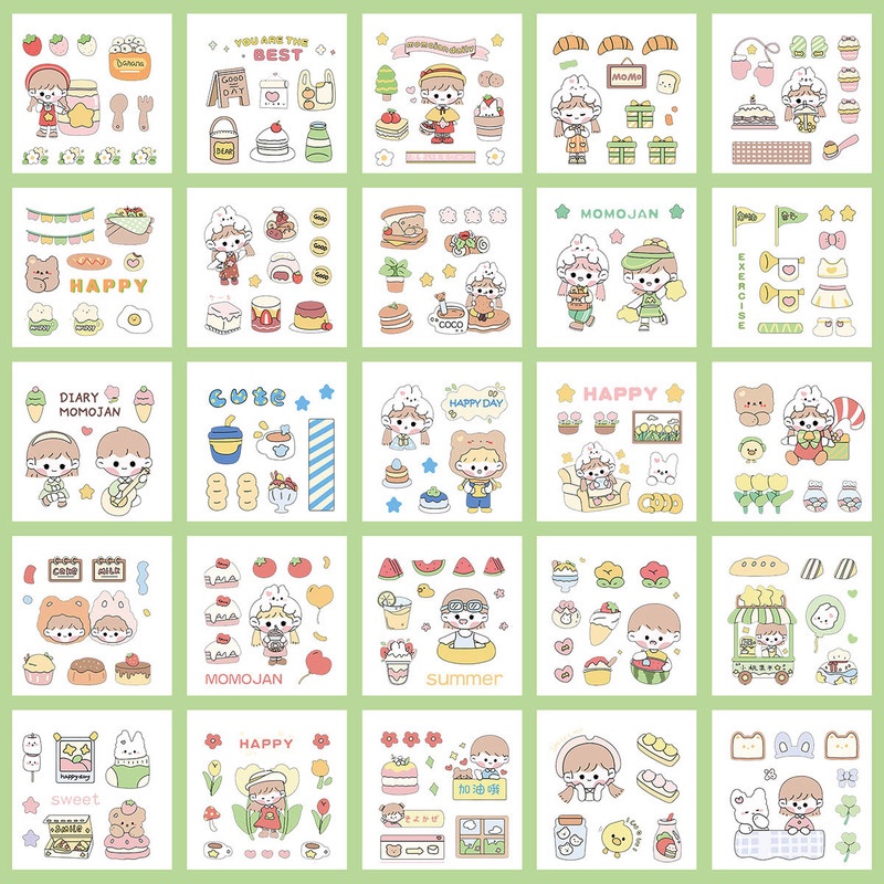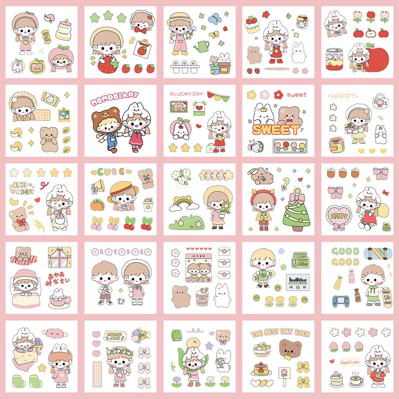 25 Sheets Cartoon Hand Account Stickers Set Cute Stickers PET Waterproof Transparent Water Cup Paste Painting