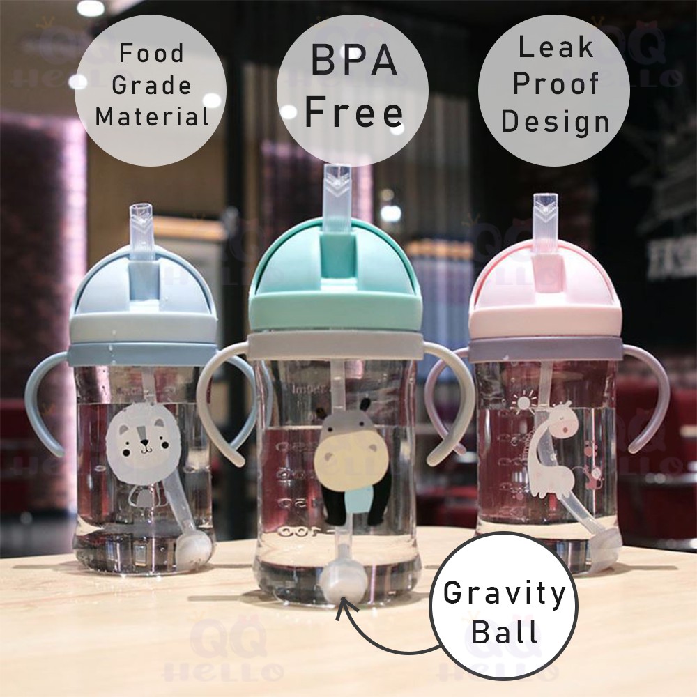 250ml 300ml 350ml Botol Air Drinking Bottle Baby Children Learning Cup with Gravity Ball Straw Handle