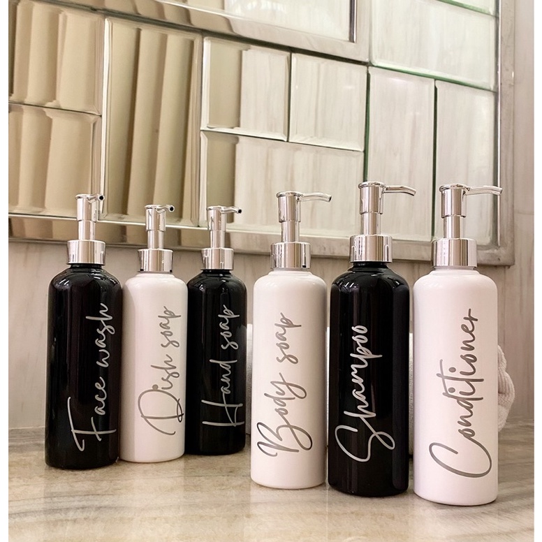 250ml liquid soap bottle BLACK WHITE glossy SILVER EDITION pump luxury aesthetic bottle refill