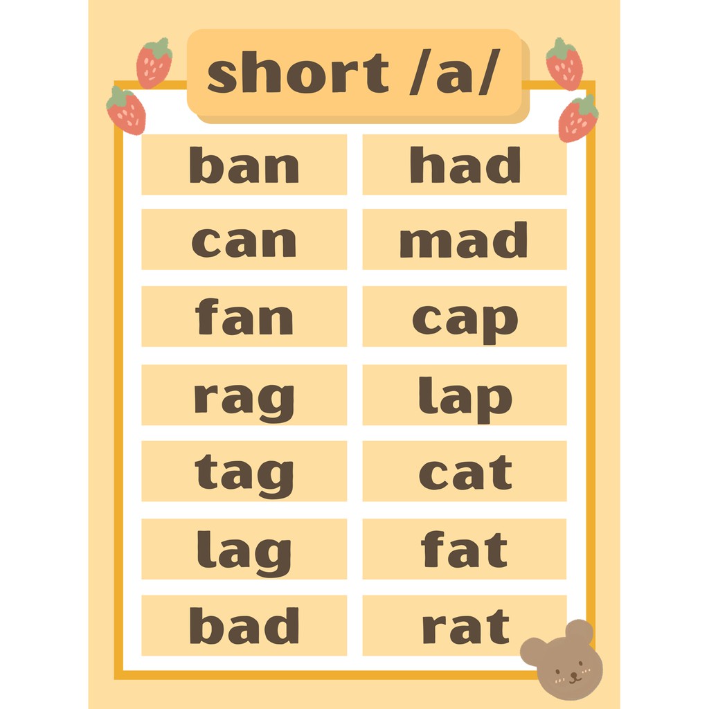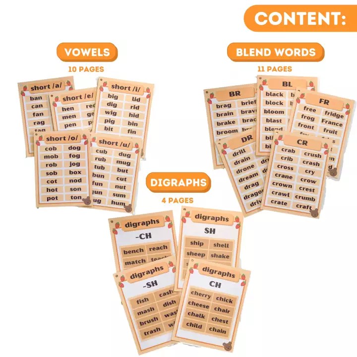 25pcs Big Vocabulary Word Flash Cards Preschool - Vowels, Blend Words, Digraphs, Matching Words
