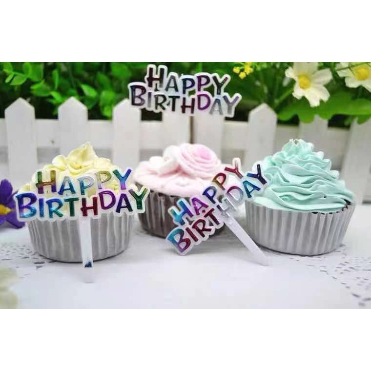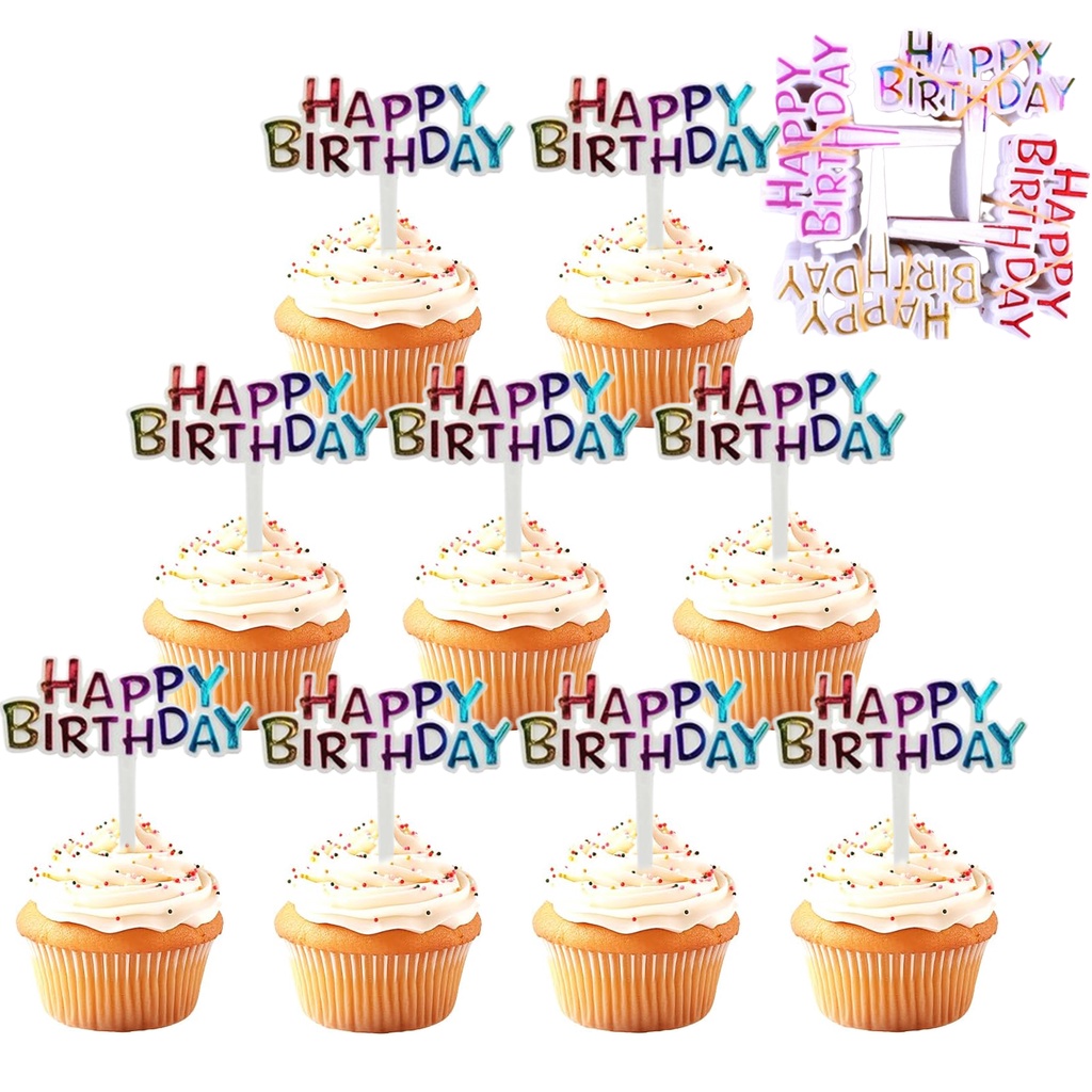 25pcs Colorful Mini Cake Toppers Happy Birthday Cupcake Toppers Picks Birthday Cake Decorations Baby Shower Party Supplies