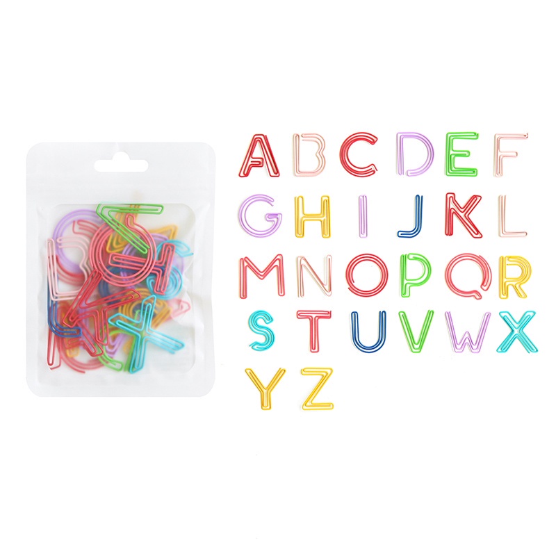 26 Pcs INS Rainbow Color Letter Paper Clip School&Office Colorful Alphabet Metal Clip