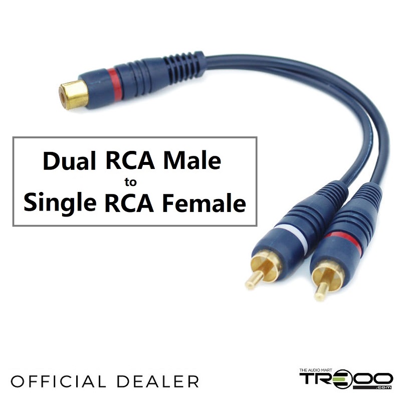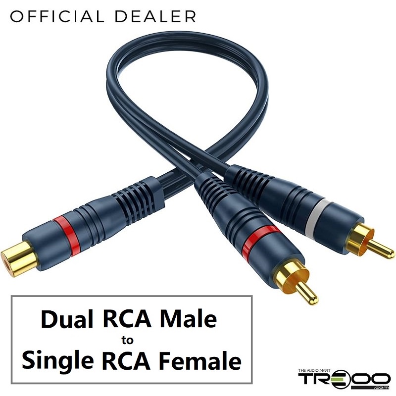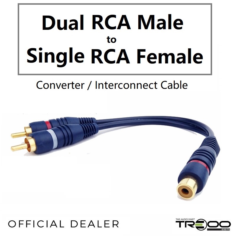 26AWG Premium 24K Gold-Plated Dual RCA Male to Single RCA Female Shielded Interconnect Cable