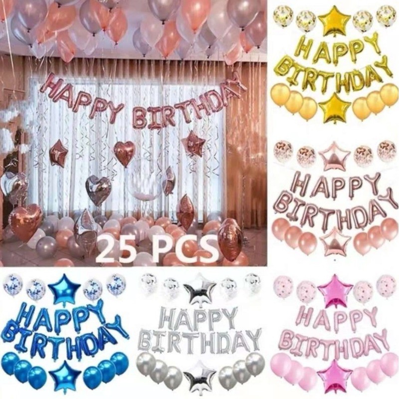 26pcs/set Happy Birthday Balloons Banner Set Birthday Party Event Decorations Supplies for Kids and Adults Reusable Ecofriendly