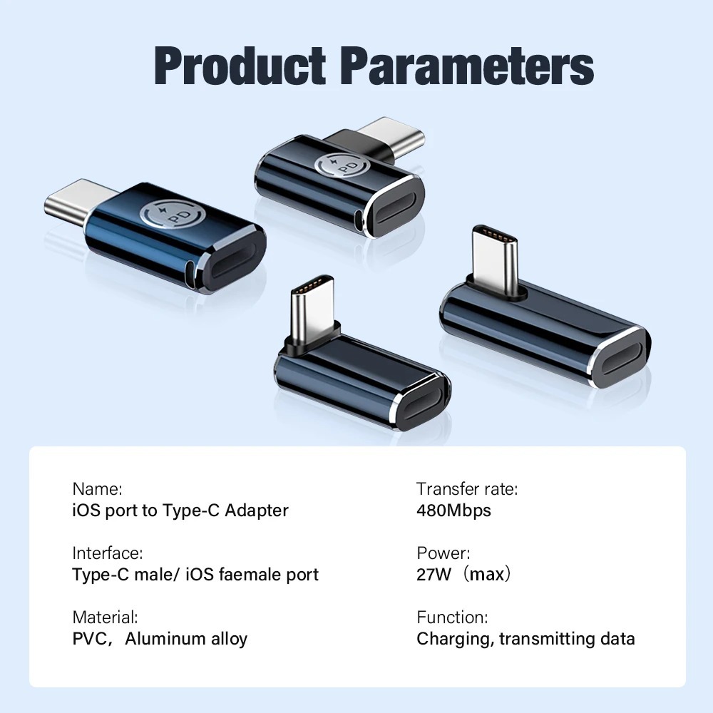 27W Type-C Fast Charging Adapter For IPhone 13 14 USB C lighting Female To Lighting Male Straight Head Elbow Converter Adapter