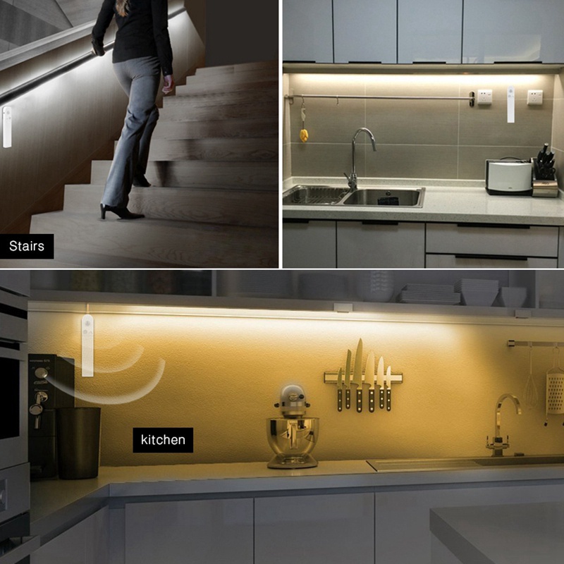 2835 SMD PIR Motion Sensor LED Cabinet Light 1m 2m 3m DC 5V Battery Strip Tape Under Bed Lamp Cabinet Decor Lights