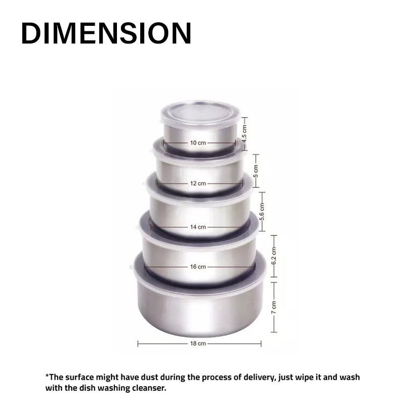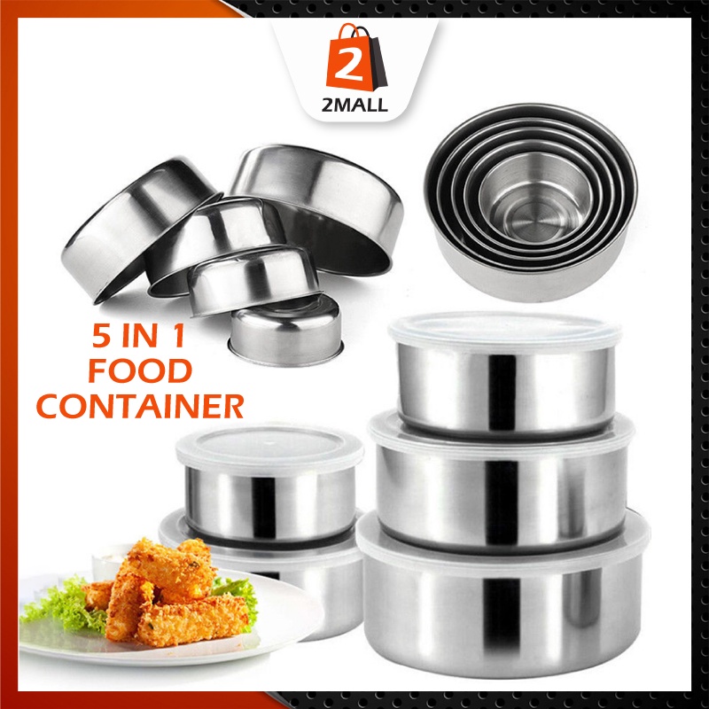 2MALL 5 in 1 Stainless Steel Multiple Food Container Storage Lunch Box Transparent Lid Picnic Camping