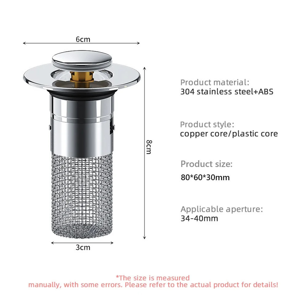 2PCS Sink Drains Filter Washbasin Leak Plug Stainless Steel Bathroom Pop-Up Sink Filter Plug Sink Strainer Stopper with Hair Catcher