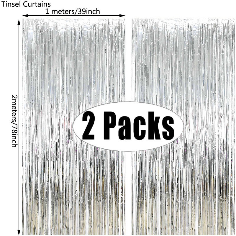 2Pack Party Backdrop Metallic Foil Fringe Tinsel Curtain Adult Kids Birthday Party Wedding Decoration Baby Shower Favor Supplies