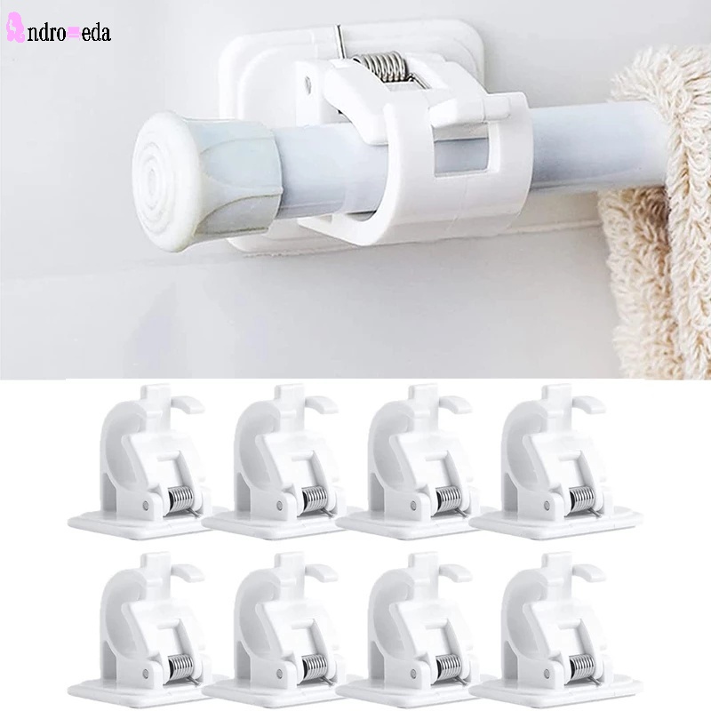 2Pcs/Set Curtain Rod Brackets No Drill Adjustable Stick Fixed Clip Self Adhesive Hanging Rack Hook for Kitchen Bathroom
