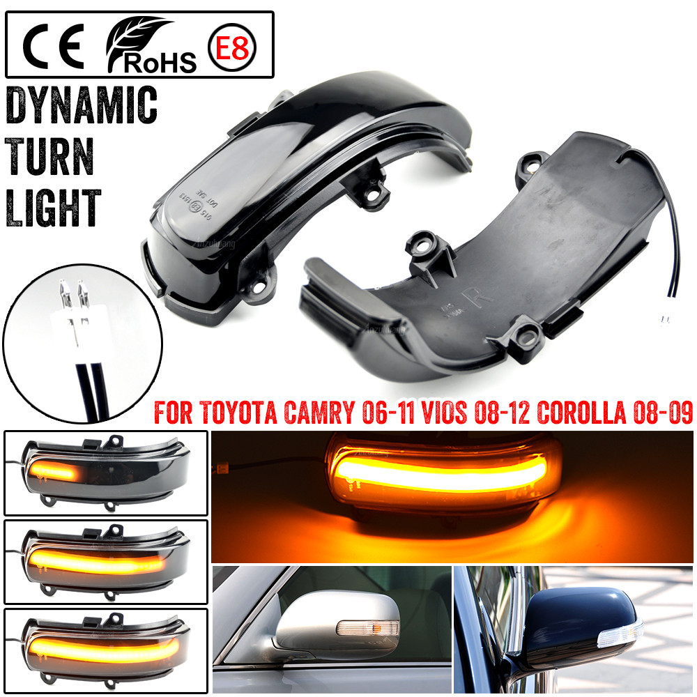 2Pcs Smoke Lens LED Dynamic Turn Signal Light Flowing Side Rear View Mirror Indicator Blinker Sequential Lamp For Toyota Camry ACV40 Corolla Altis Yaris XP90 Vios NCP93 Daihatsu