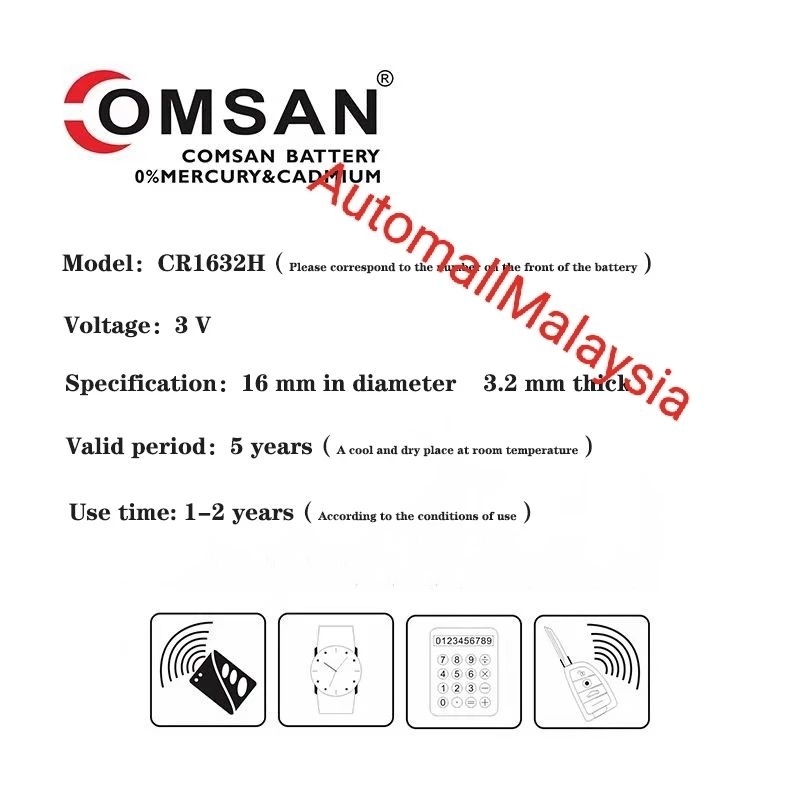 2pc High-Power 3V Lithium Battery CR1632H for External Tire Pressure Monitoring Sensor Battery Car Key Battery