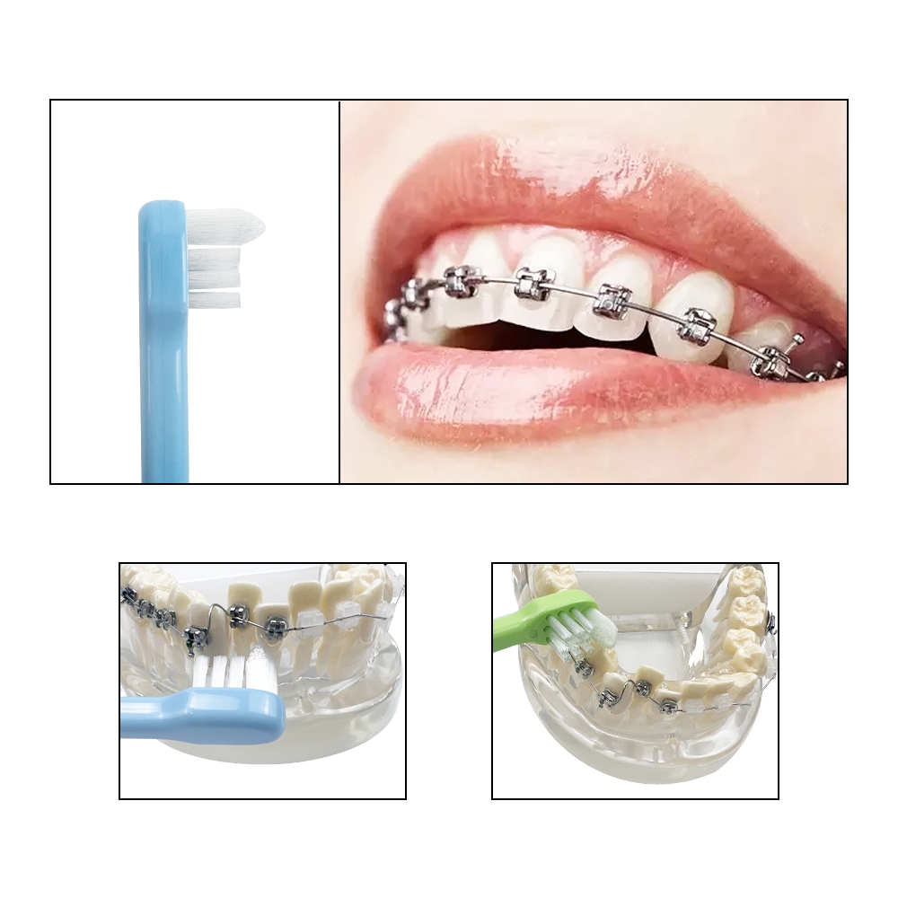 2pcs Orthodontic Interdental Brush Soft bristles Teeth Cleaning Soft Toothbrush Brushes Braces Floss Hygiene Dental Toothbrush Small Head End Tuft Toothbrush
