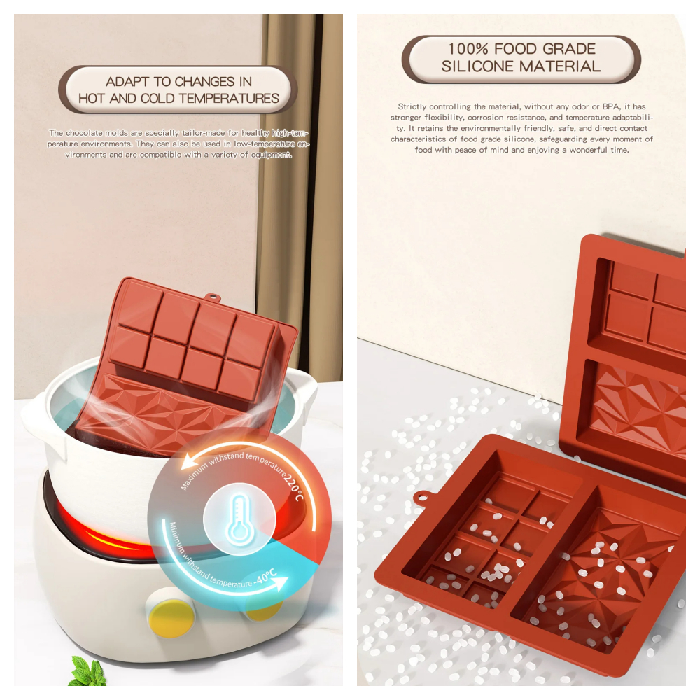 2pcs Silicone Chocolate Bar Molds Thicken Free Easy Release Non-Stick Baking Big Chocolate Candy Energy Bar Mold Biscuit Baking Tools
