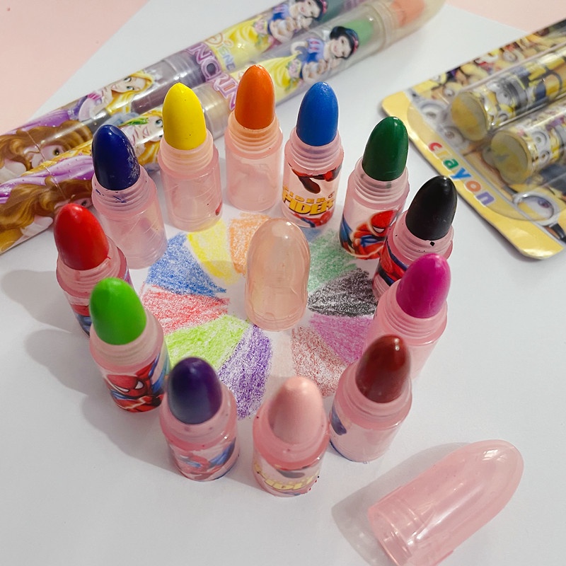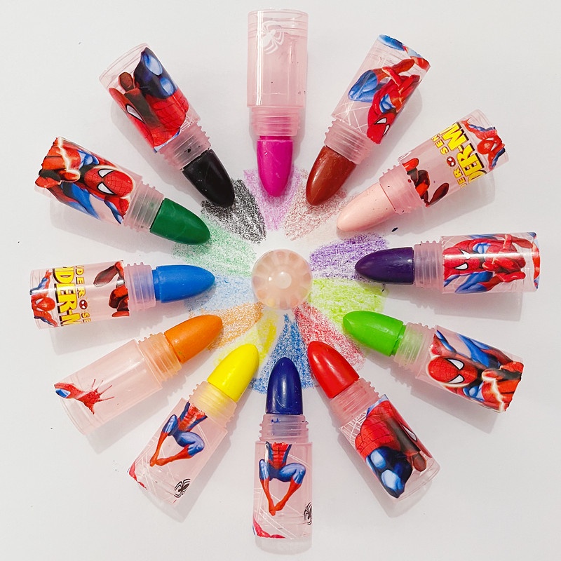 2pcs/set Cartoon Kids Green Crayons 12-color Interchangeable Head Oil Pastel Student Drawing Doodle Crayons