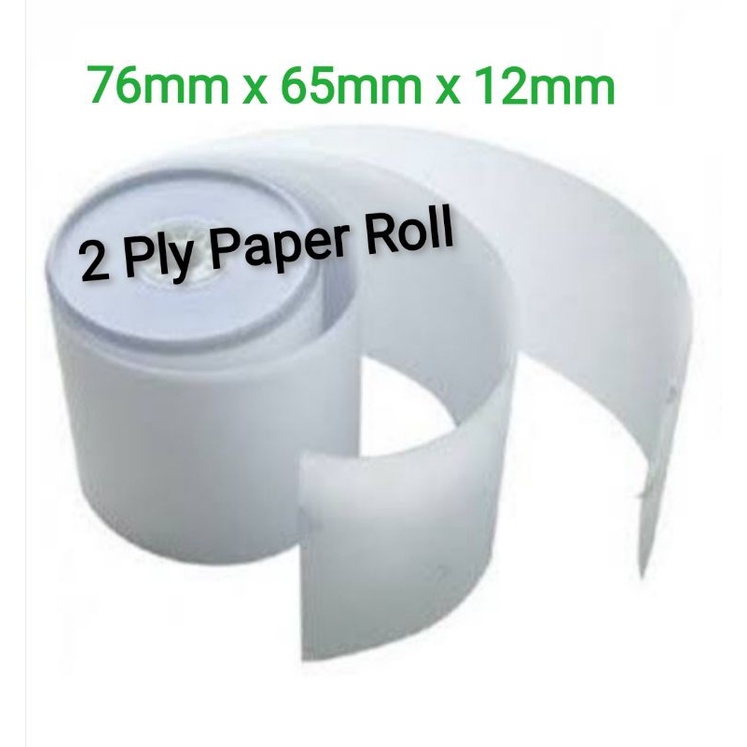 2ply Dot Matrix Paper Roll for Receipt Printer 76mm x 65mm x 12mm (10 rolls per pack)