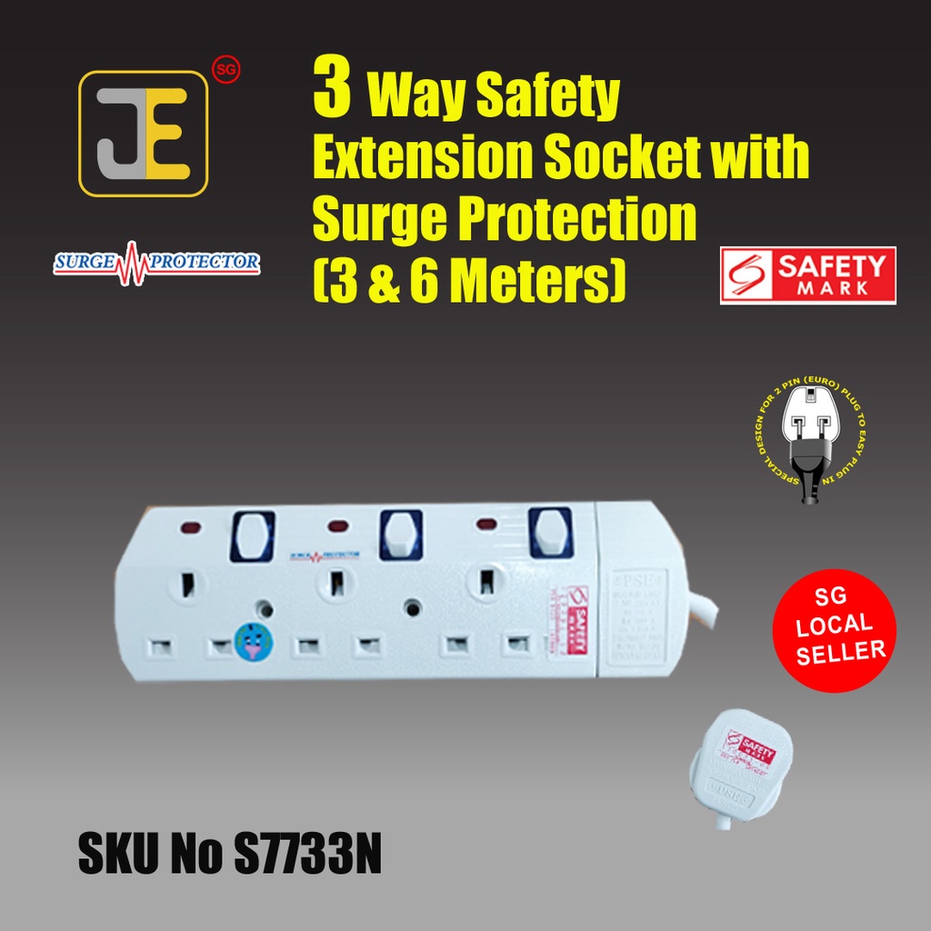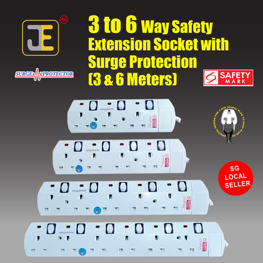 3/4/5/6 Way Extension Safety Socket with Surge Protection & Safety Mark (3 and 6 Meter)