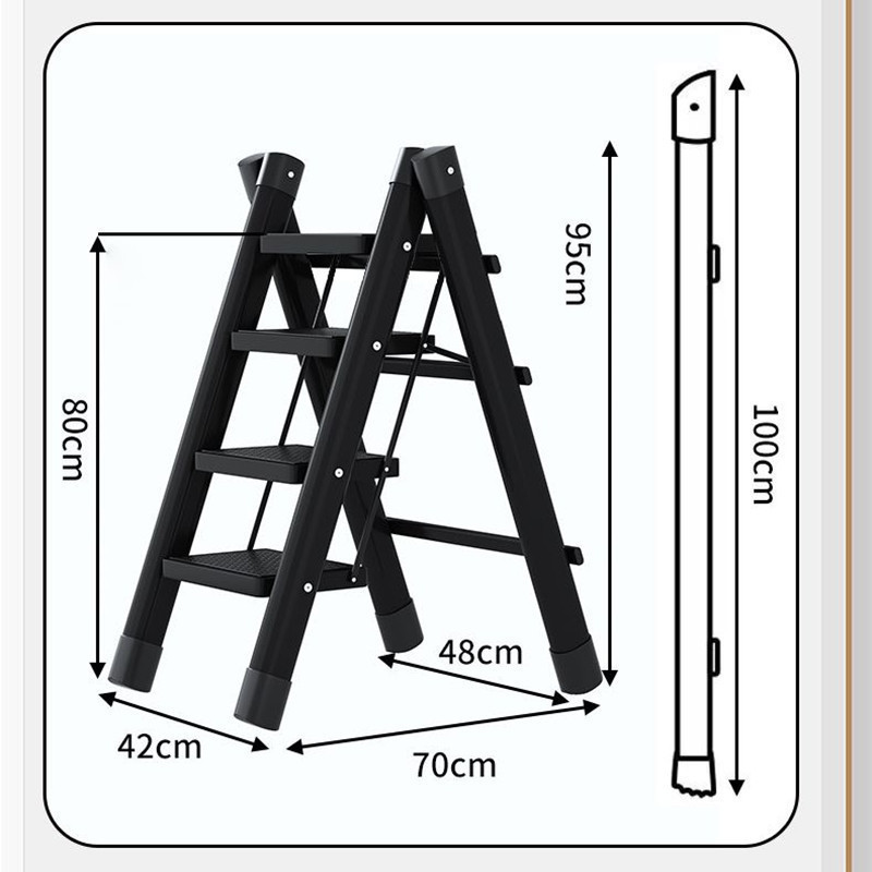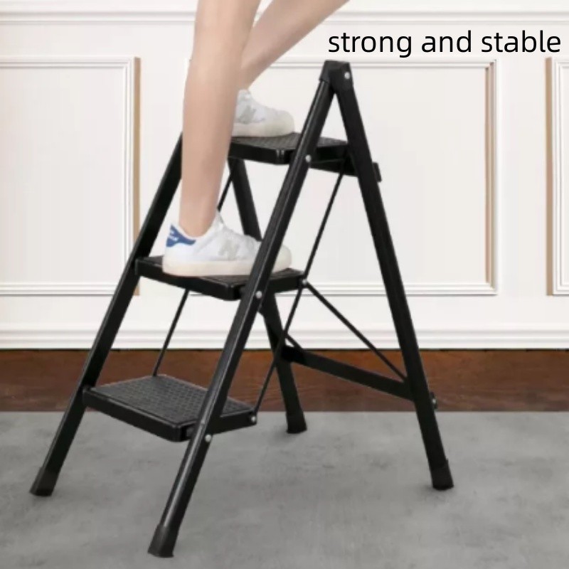 3/4 Steps Ladder Step Folding Home Ladder Iron Black And White