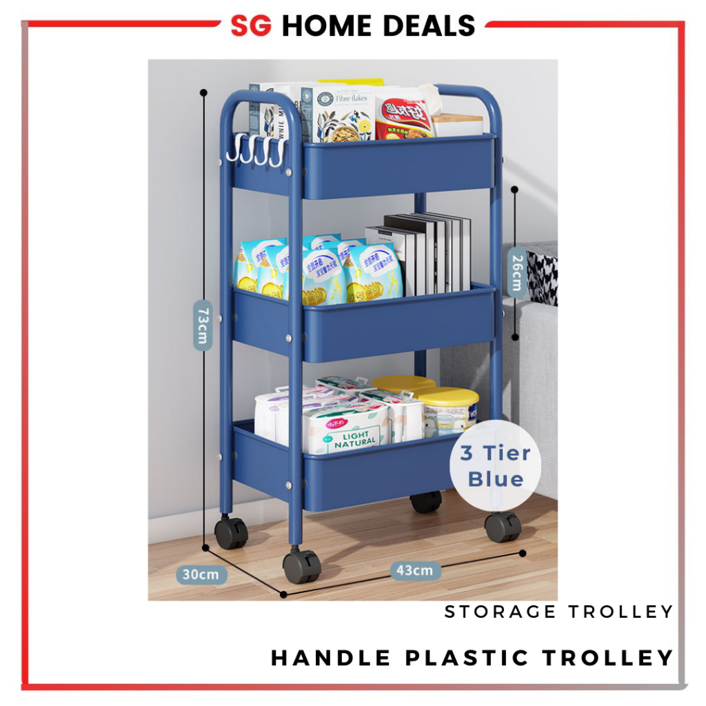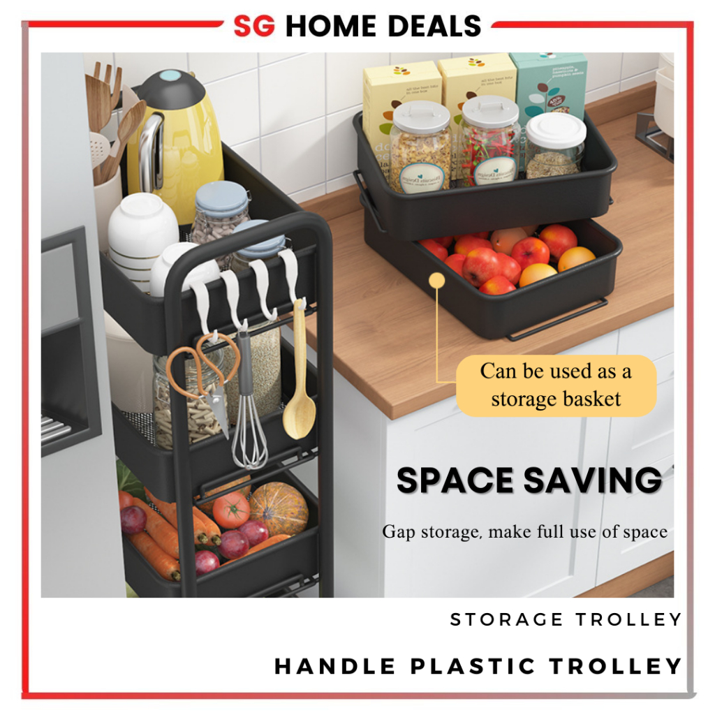 3/4 Tier Plastic Trolley Cart Handle, Plastic Trolley Storage Racks With Handle Office Kitchen Home Use