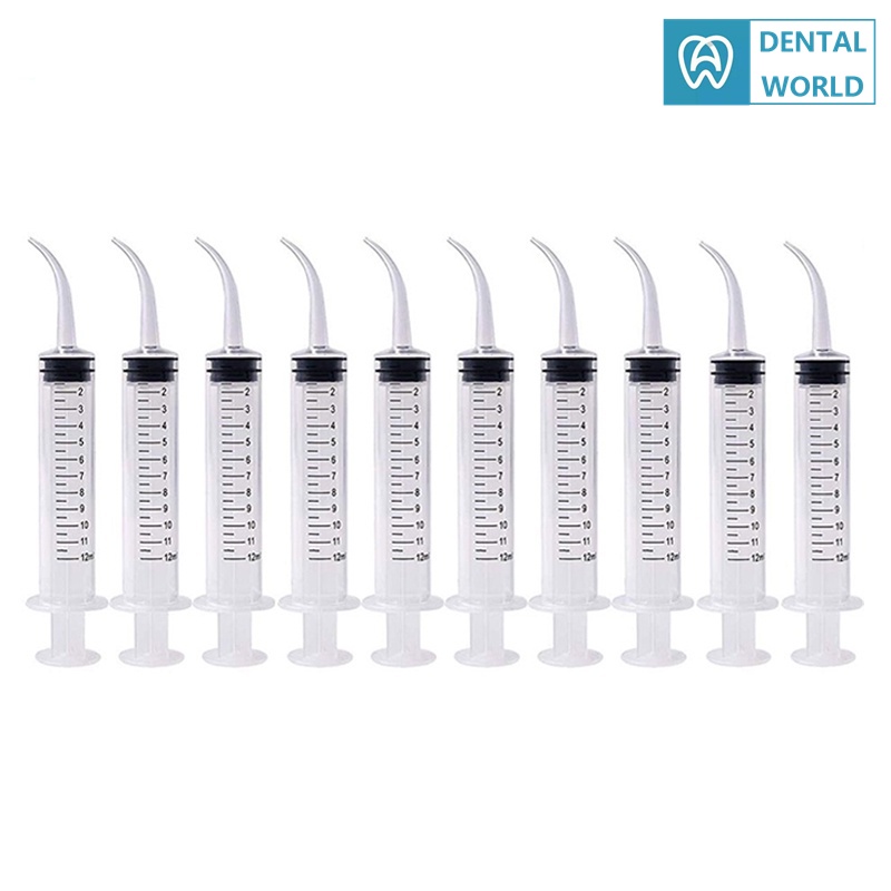 3/5/10pcs Dental Disposable Elbow Syringe Disposable Dental Irrigation Syringe With Curved Tip Tooth Whitening 12ml