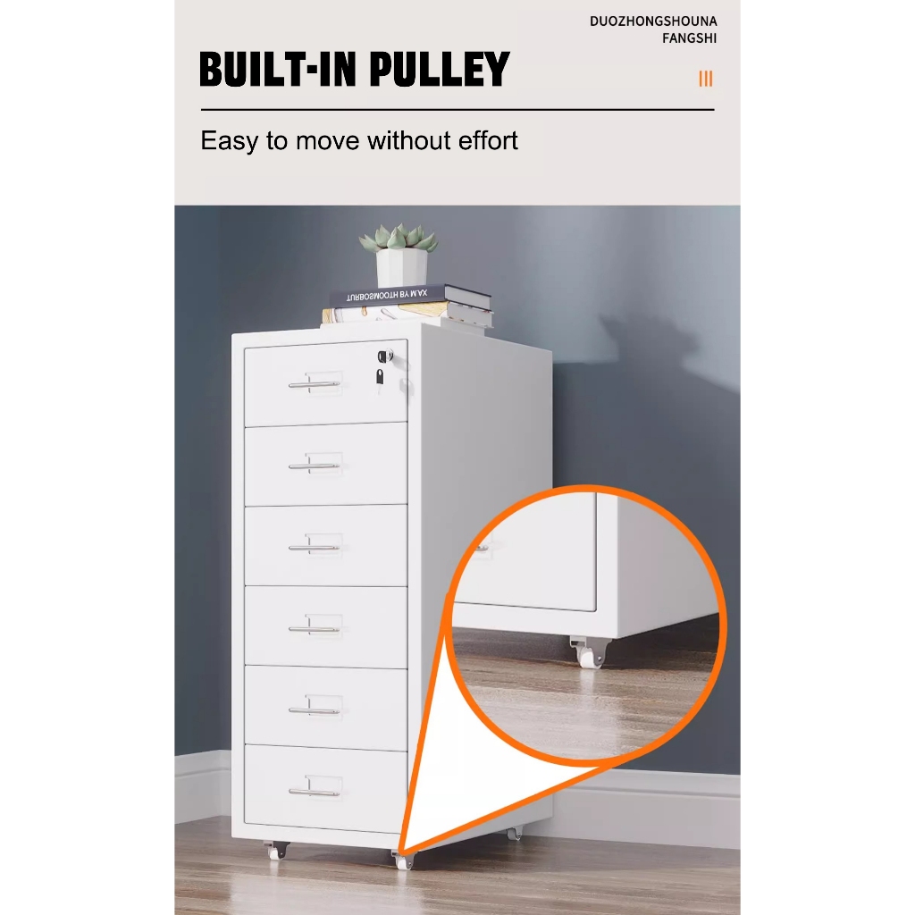 【Close out】3/5/6l Metal Drawer Cabinet With Lock Under Desk Steel Cabinet With Wheel For Home Office