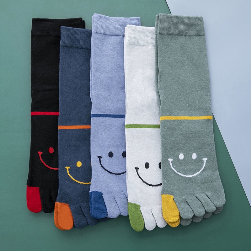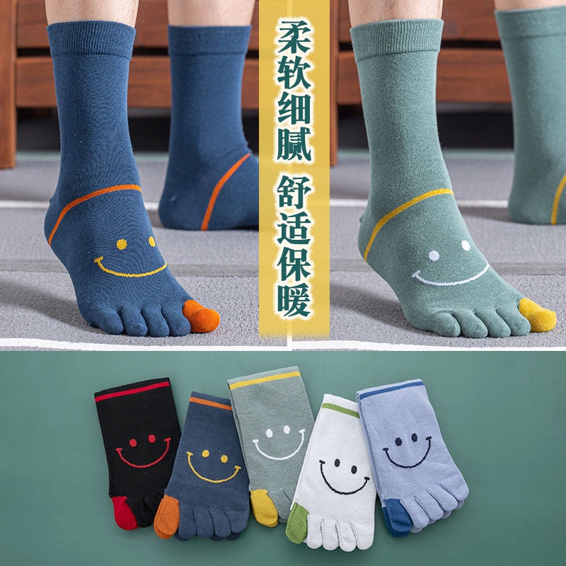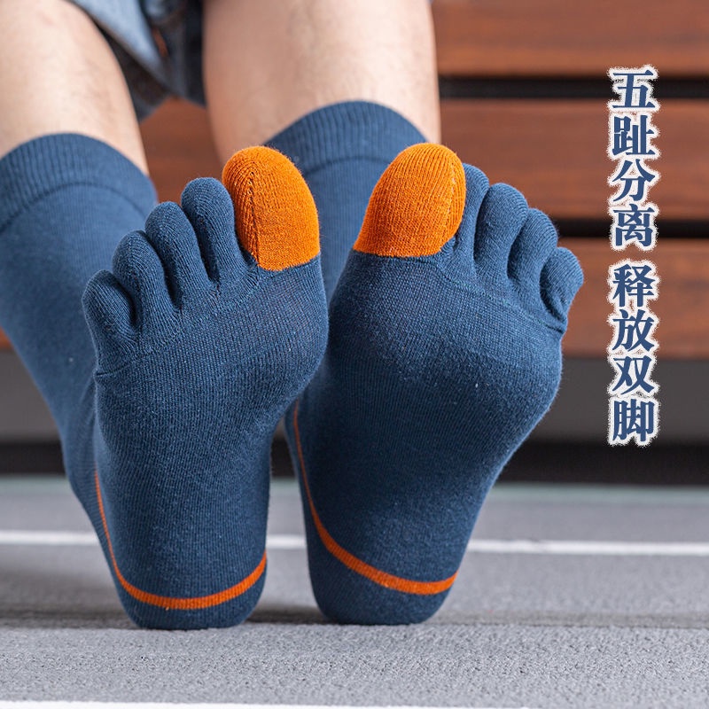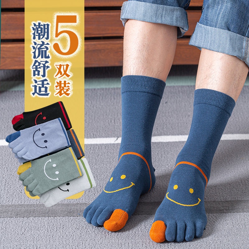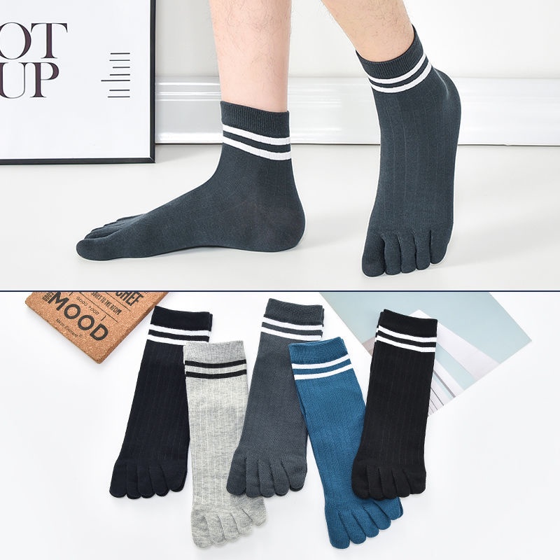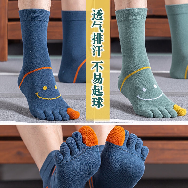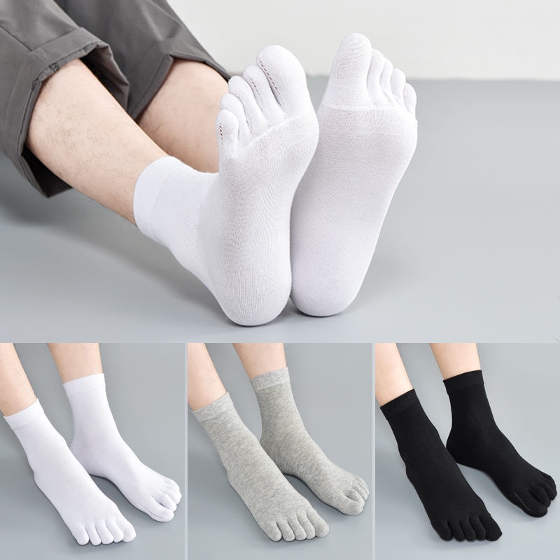 3 / 5 pairs of five finger socks men's middle tube socks men's split toe four season medium thick cotton socks autumn and winter style sweat absorption, ventilation and odor prevention