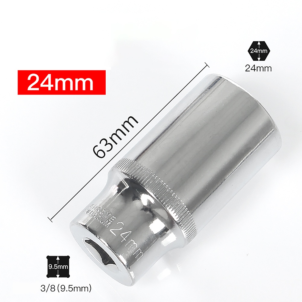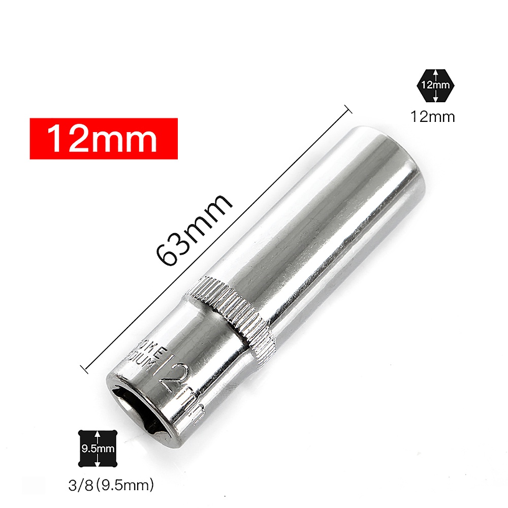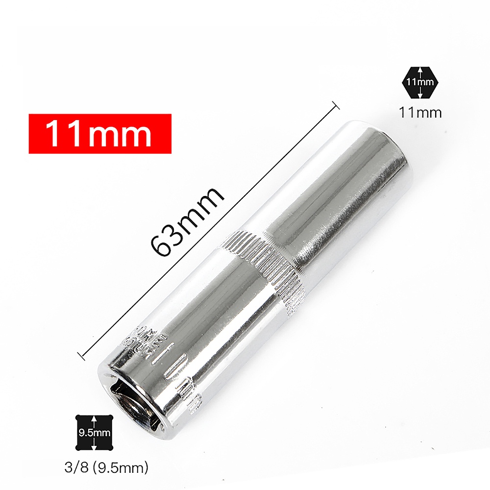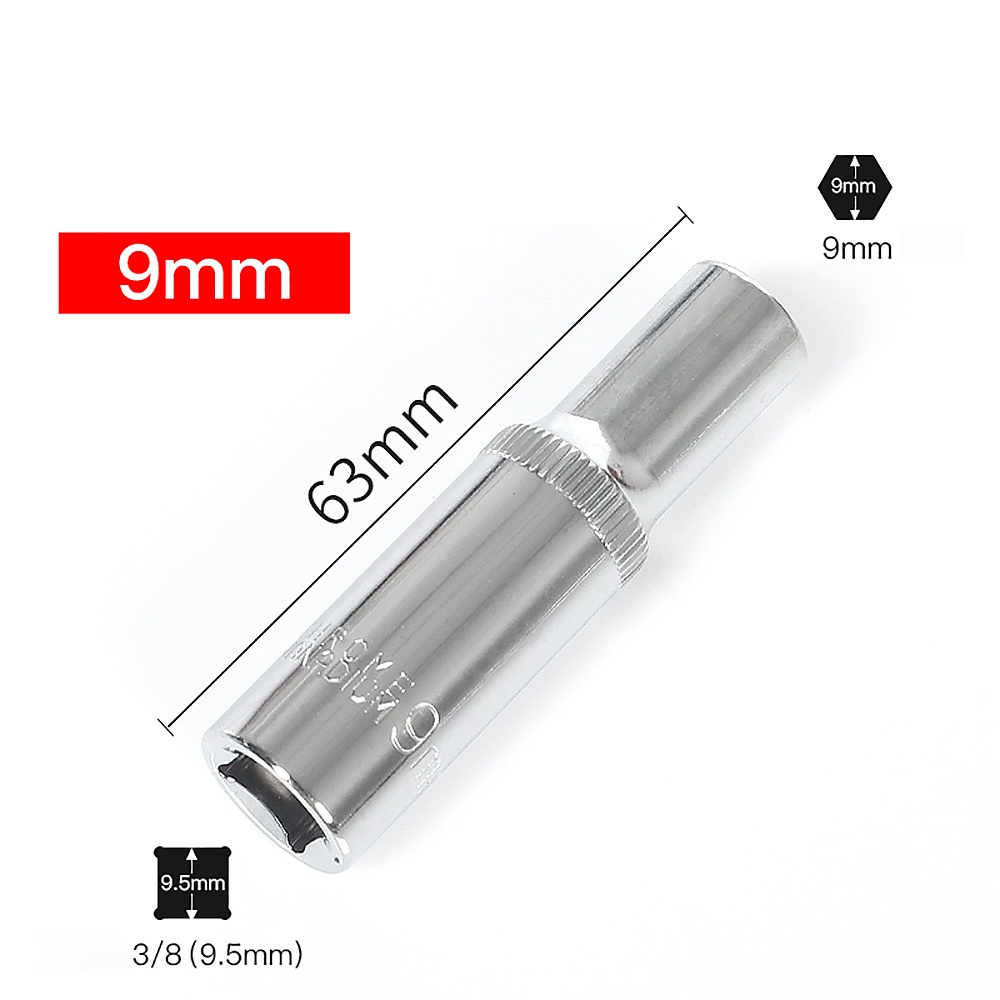 3/8"(9.5mm) Driver Extra Long Hex Socket Sleeve Wrench Tool Adapter 6mm-24mm
