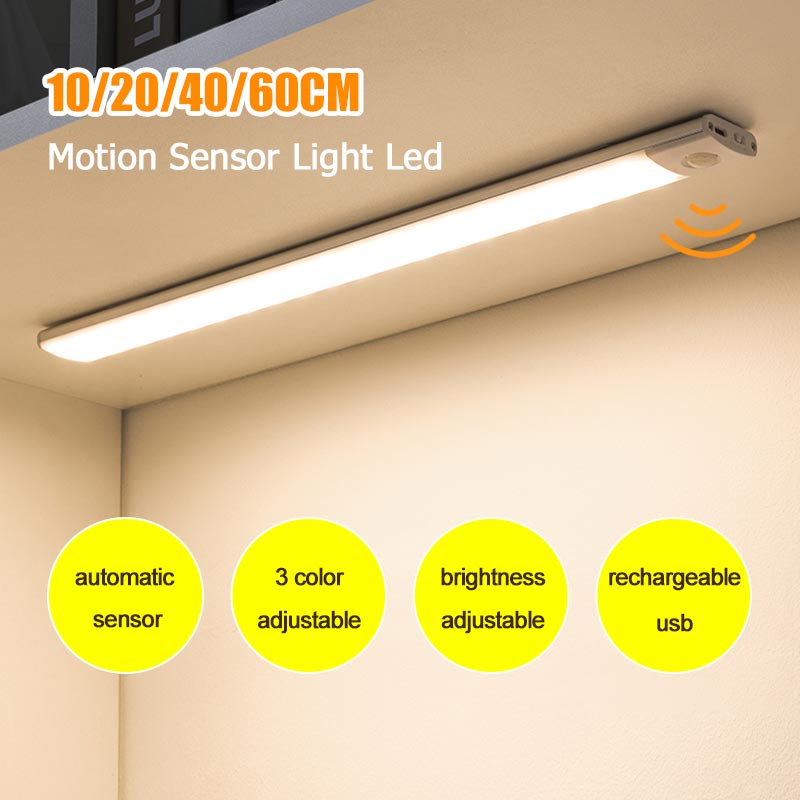 3 Color Motion Sensor Led Light Strip Rechargeable Kitchen Cabinet Light Wireless Wall Lamp Lighting Closet Wardrobe Bedroom Bedside Lamp USB Magnetic Light