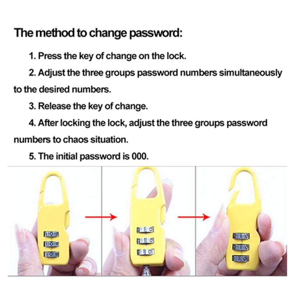 3 Digit Combination Password Dial Padlock Lock Metal Resettable for Suitcase (Random Color)