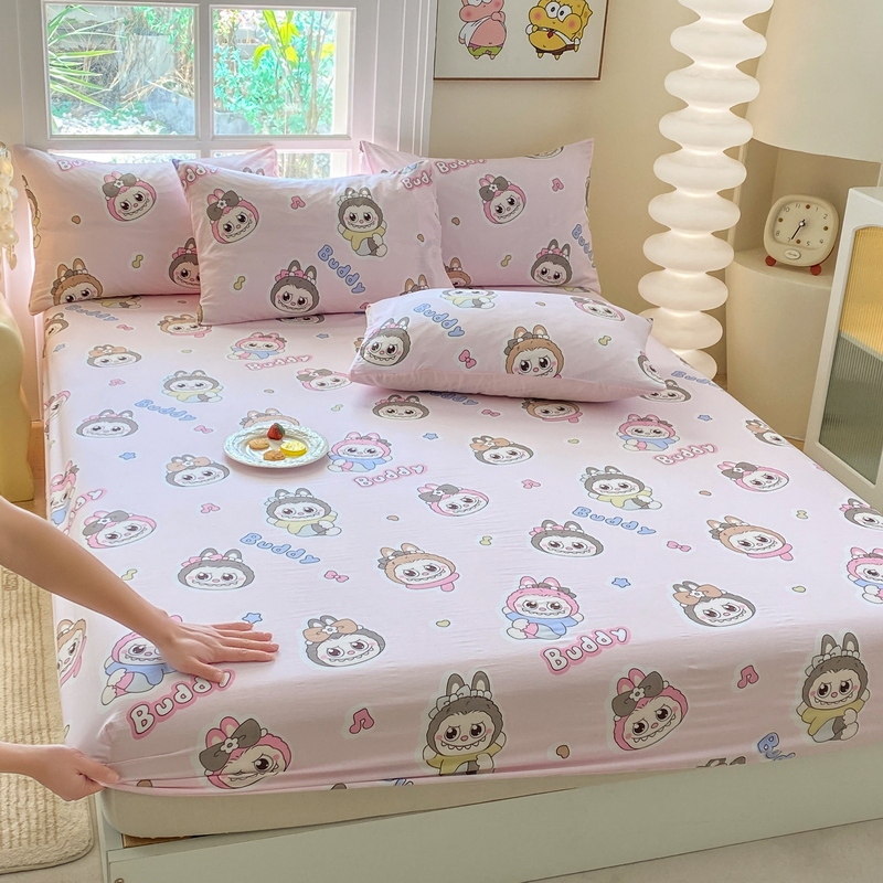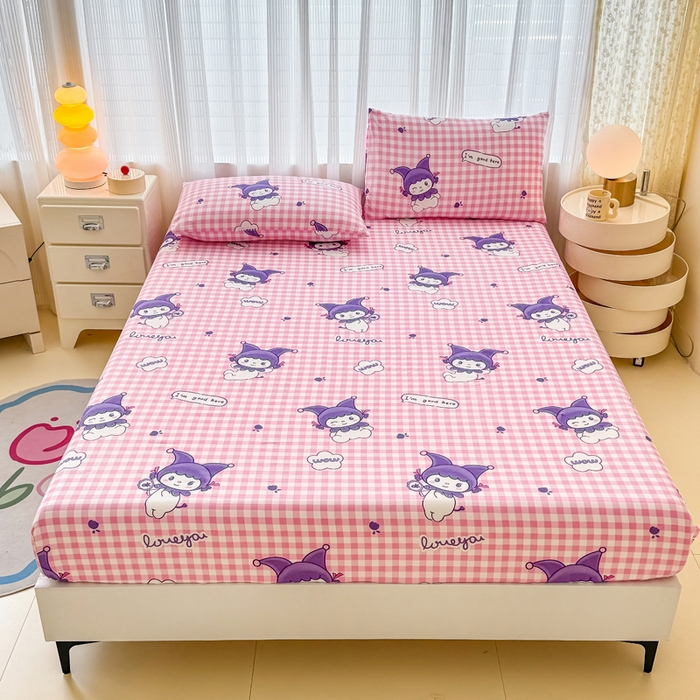 3 IN 1 Cartoon Style Cadar Bed Sheet Cute Stitch Print High Elastic Band Fitted Sheet Single/Super Single/Queen King/Super King Size All-Included Bed Cover Pillowcase
