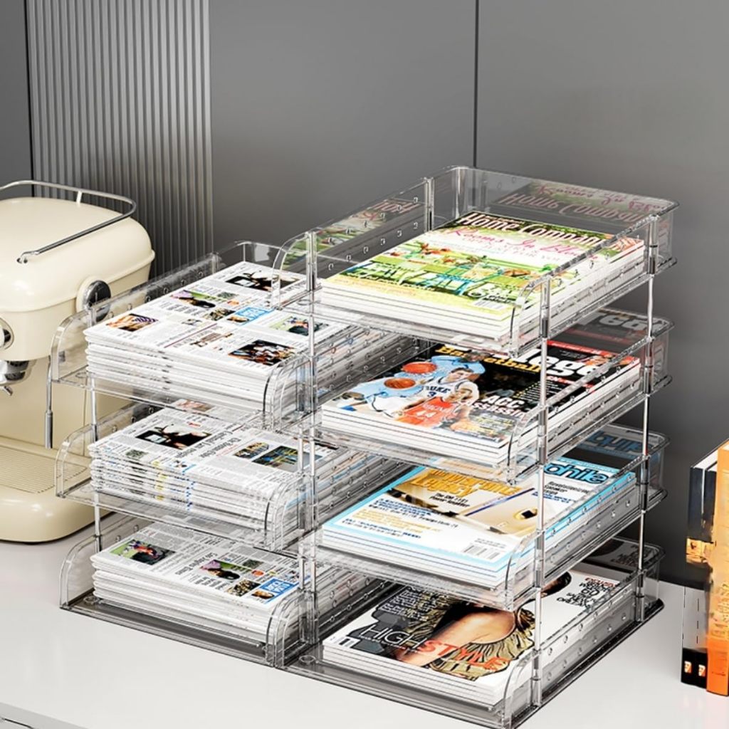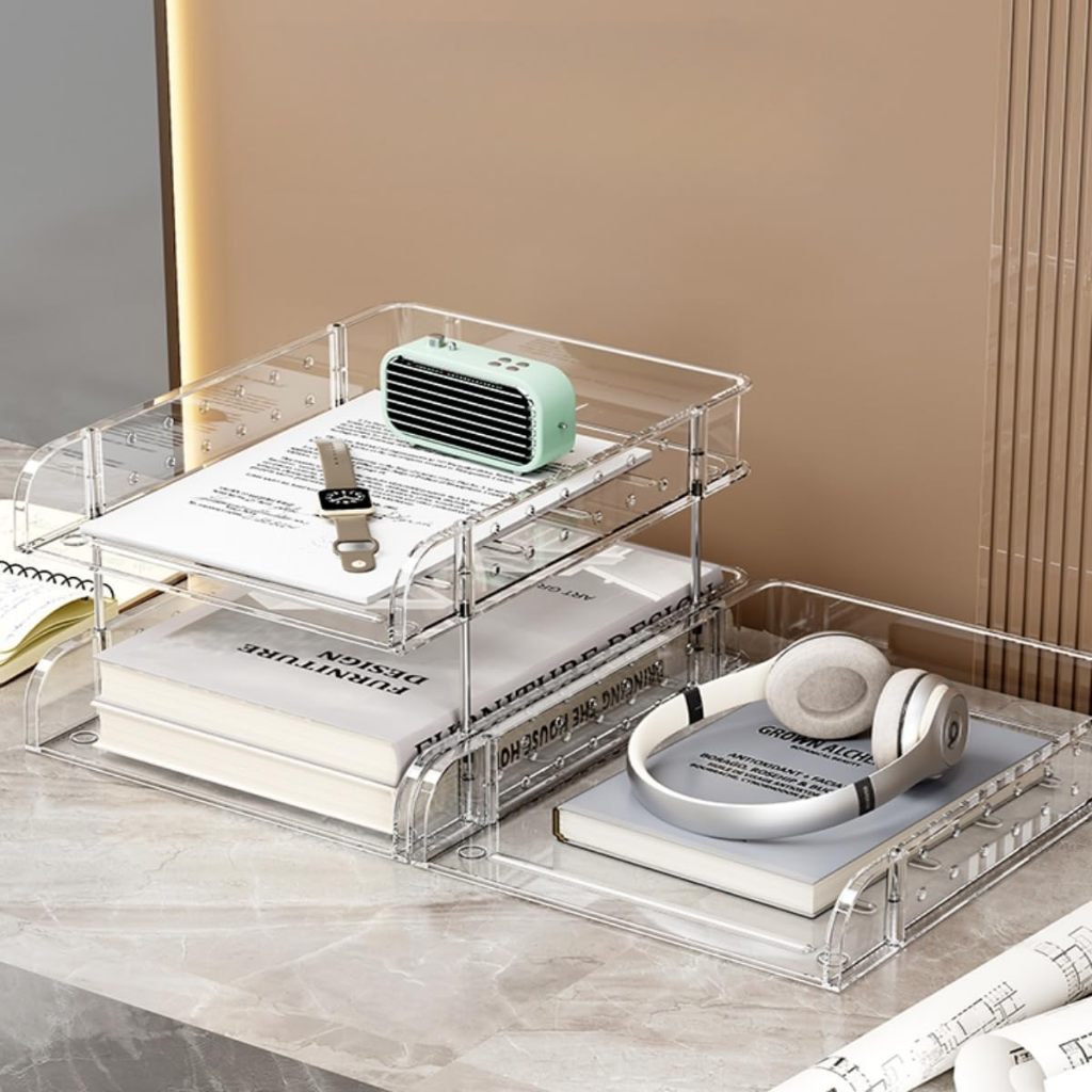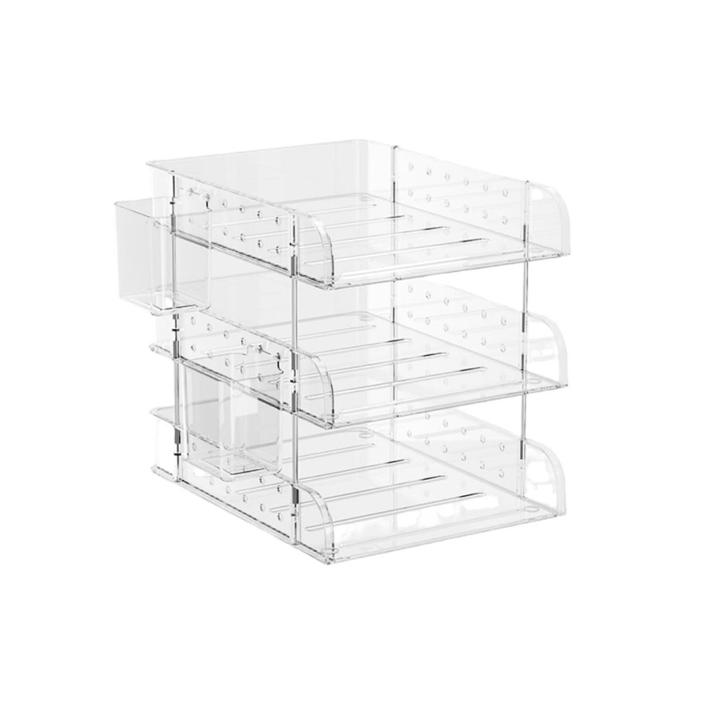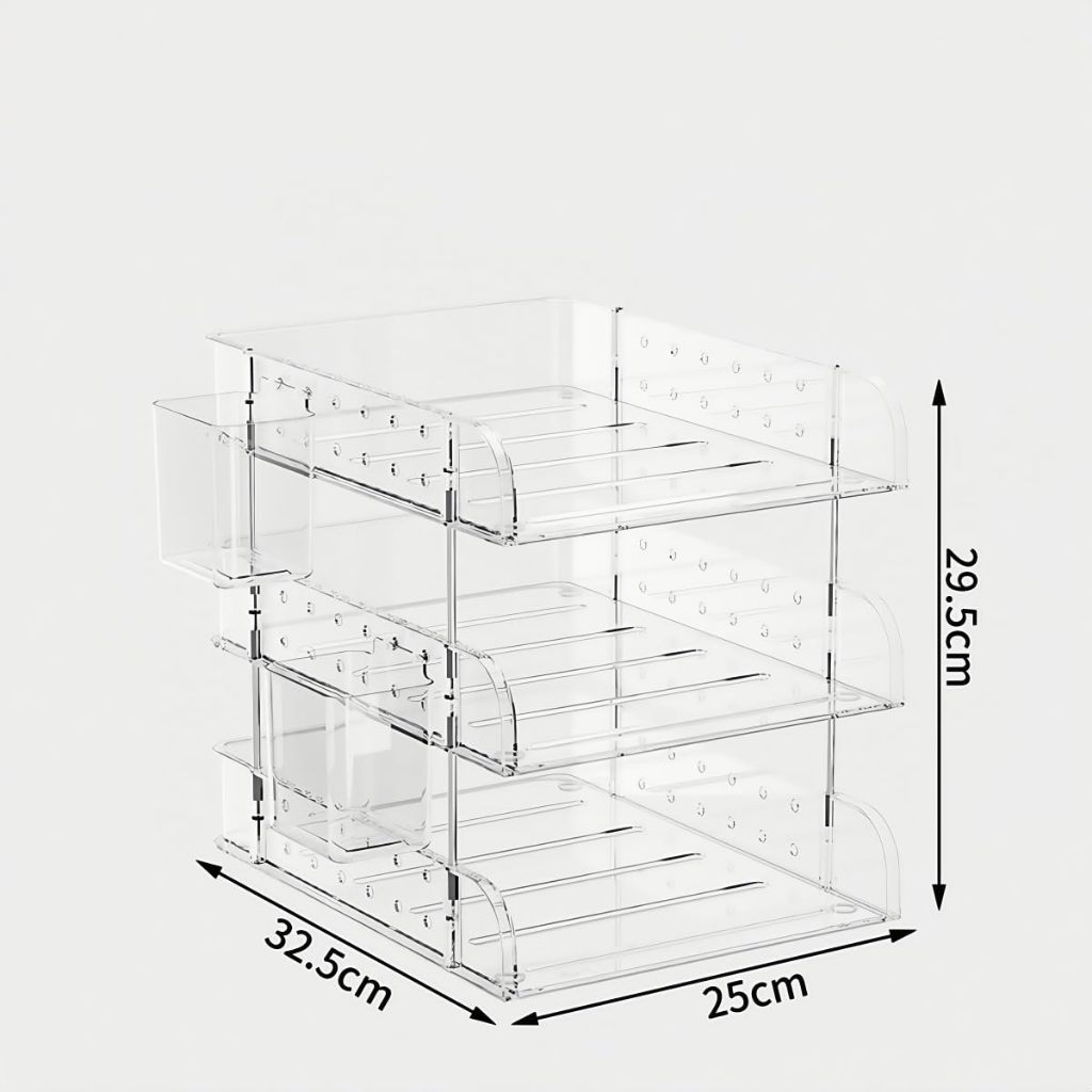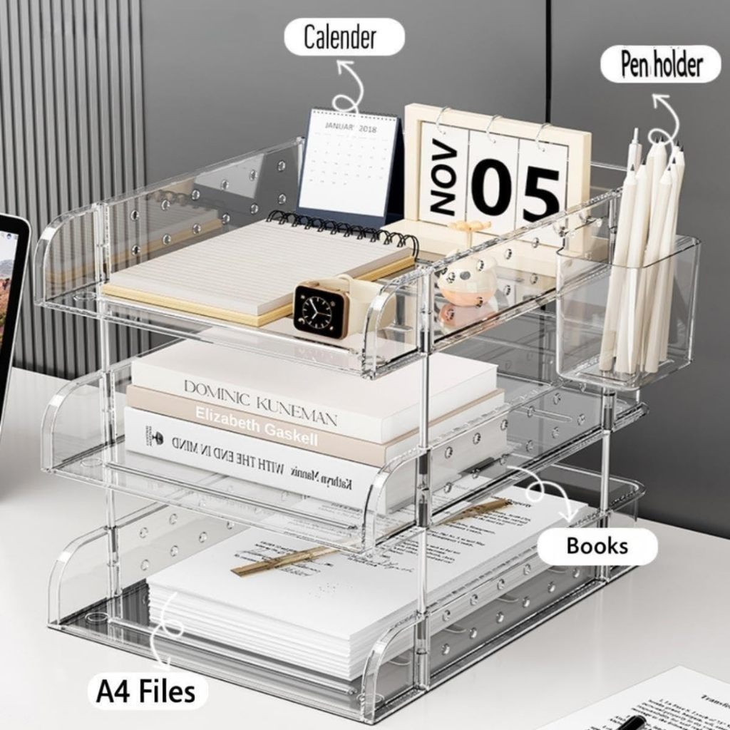 3-Layer Paper Tray For Stackable Transparent Tables With 2 Small A4 Document Boxes Letter Shelf Magazine Document Tray
