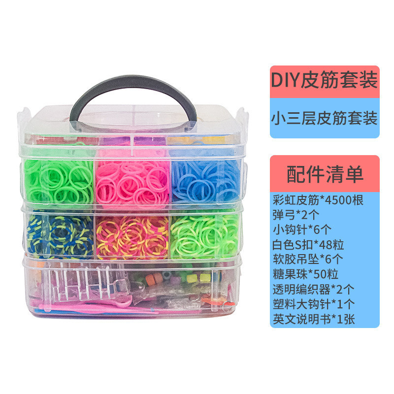 3 Layers Creative Colorful Loom Bands Set Rainbow Bracelet Making Kit DIY Rubber Band Woven Bracelets Craft Toys for Girls Birthday Gifts