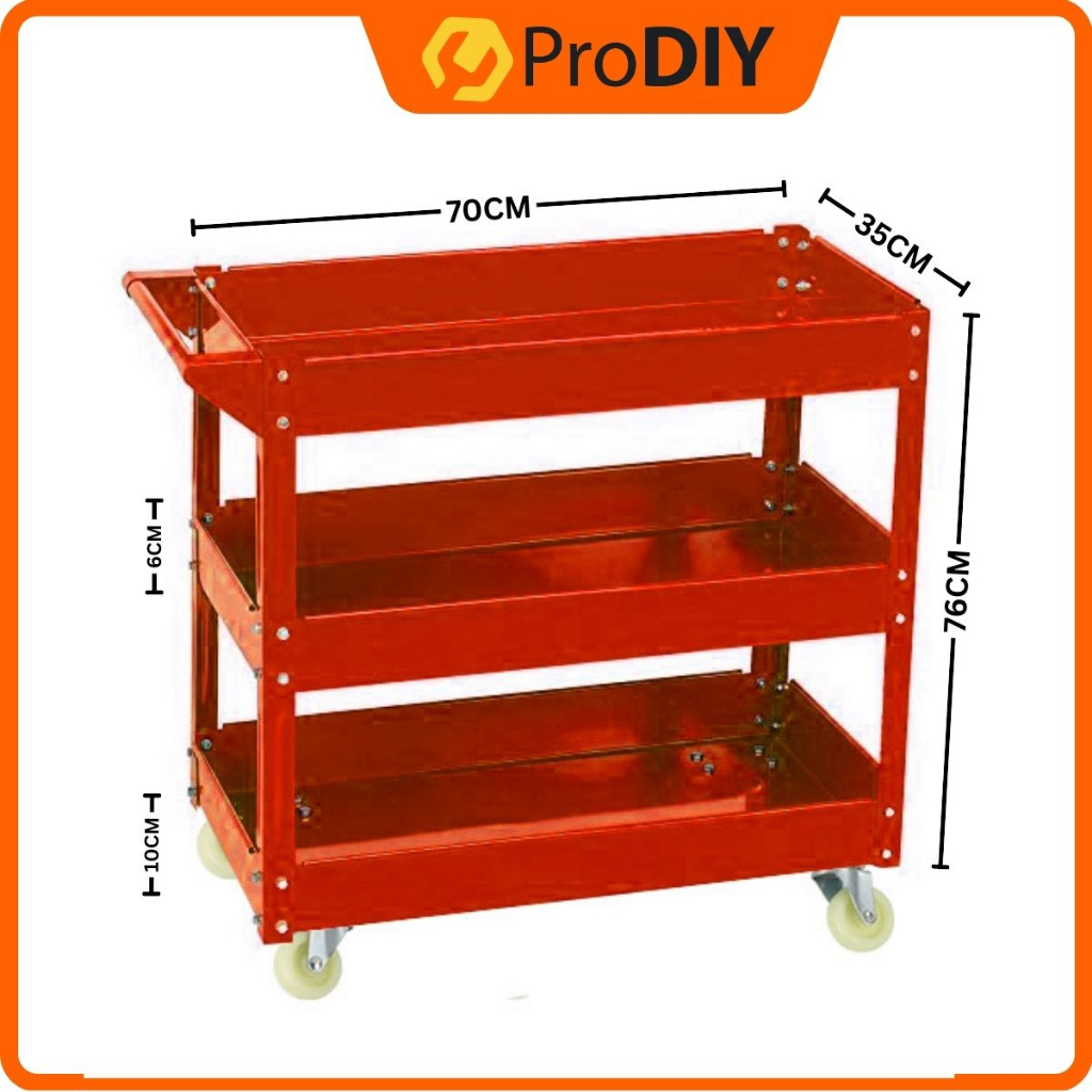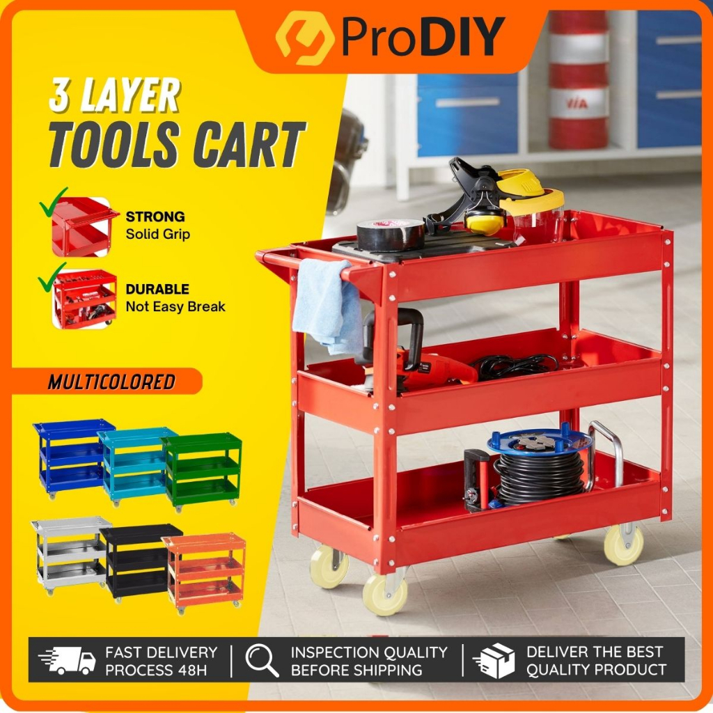3 Layers Service Cart Metal Steel Tool Trolley 120KG Barang Garaj Bengkel Tools Shelf Storage Tiga Tingkat Layer