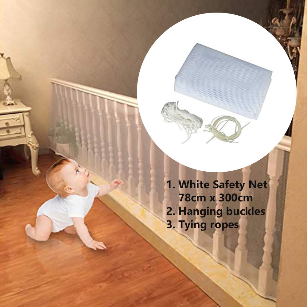 3 Meters Kid Safety Net Indoor Balcony and Stairway Safety Net for Baby, Toddlers and Kids (Free Cable Tight)