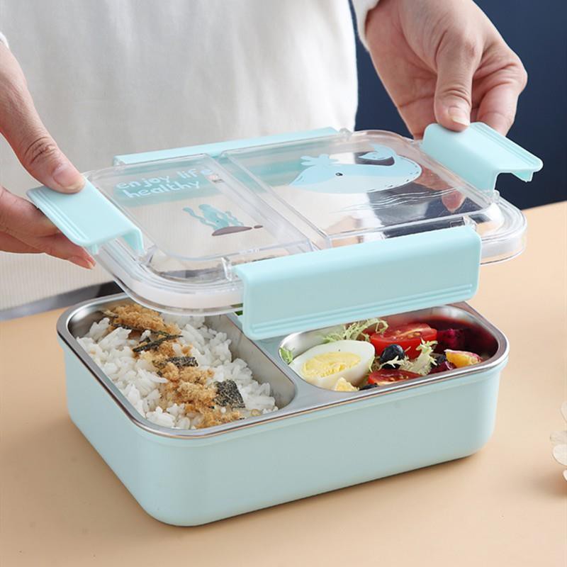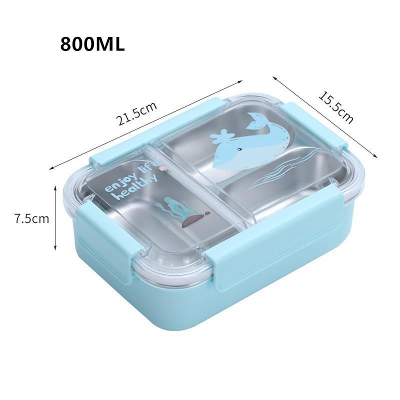 3 Partition Cartoon Stainless Steel Kids Lunch Box Leak-Proof Children Food Container