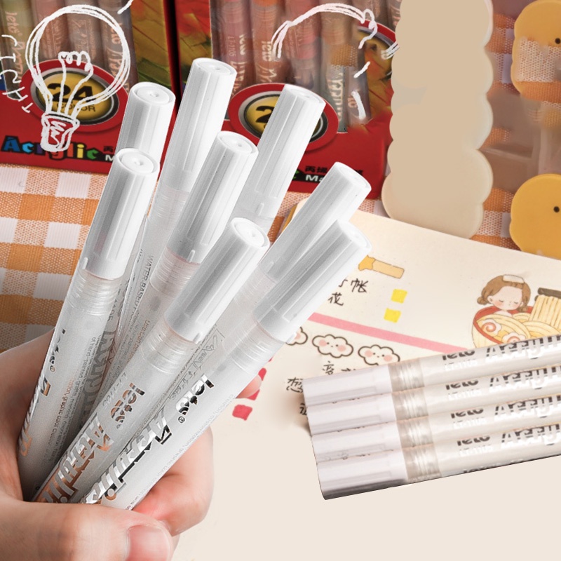 3 Pcs 2.0mm White Acrylic Marker Pen School Office Waterproof Permanent White Marker