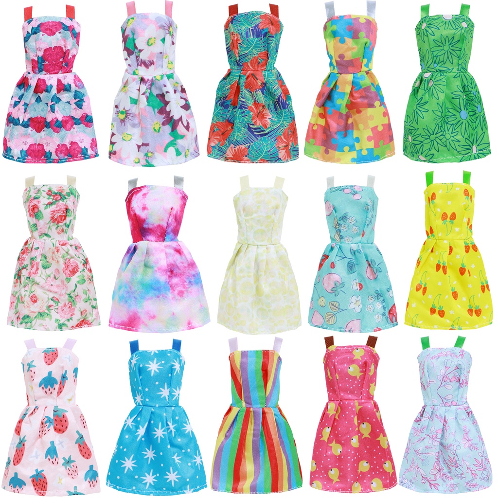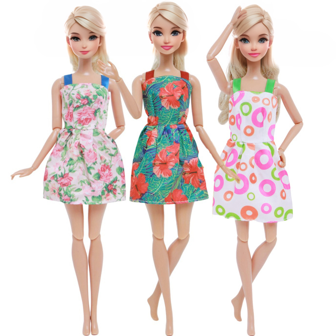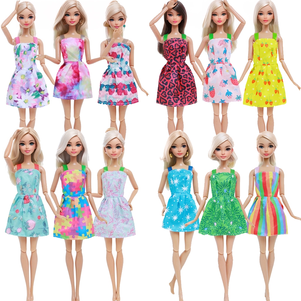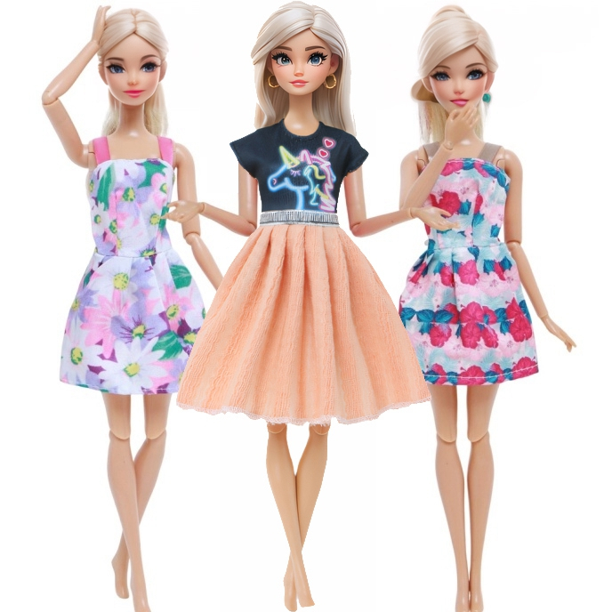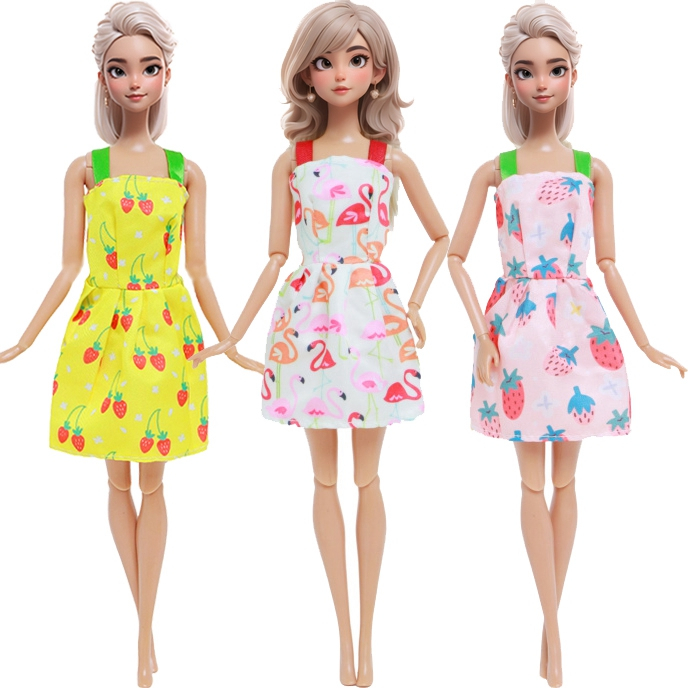 3 Pcs/Set Mixed Dress for 11.5 Inch Doll Mini Gown Princess Daily Wear Cute Print Clothes Baby Girl Kids Playhouse Toy Gift (NO DOLL)