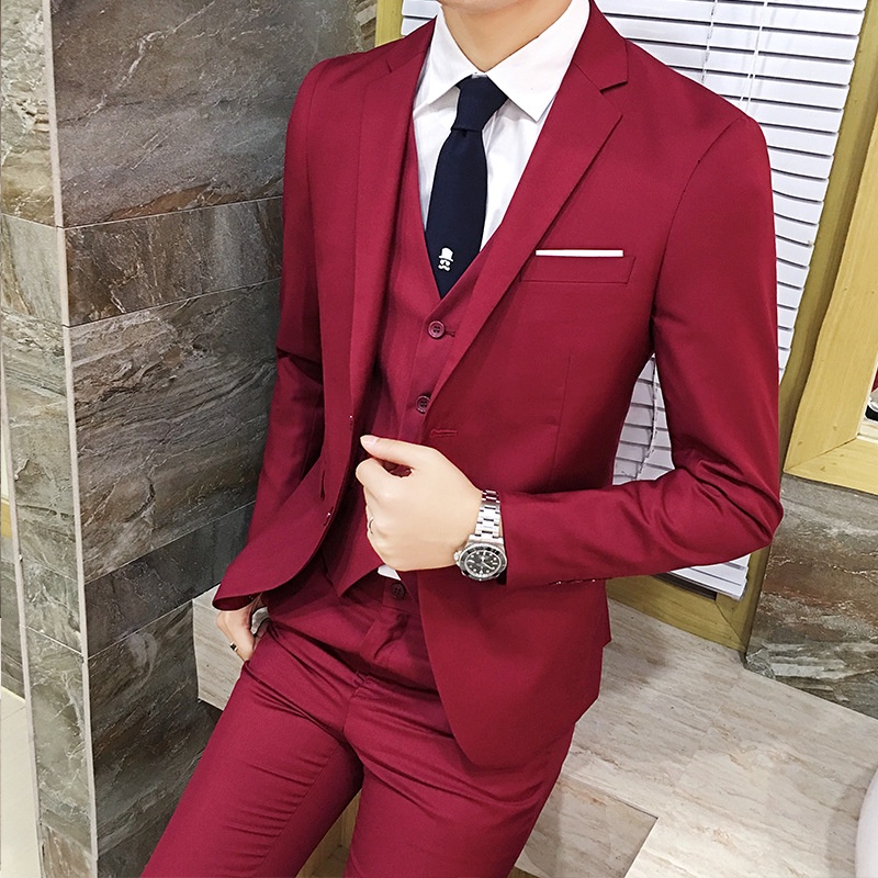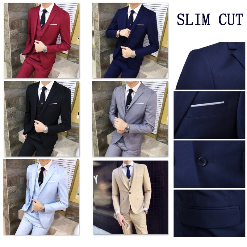 3-Piece Set men blazer set suit formal business wedding Korean office outerwear casual jacket tuxedo suit men