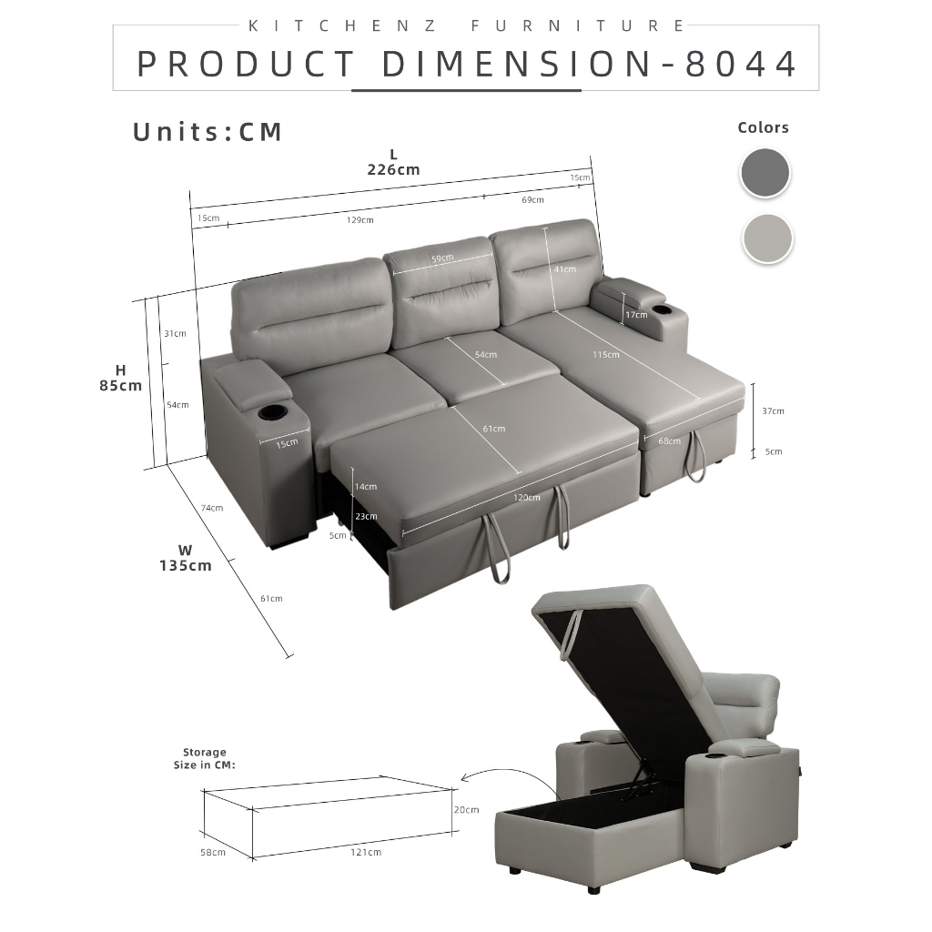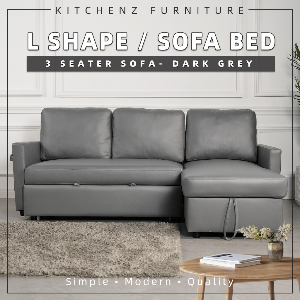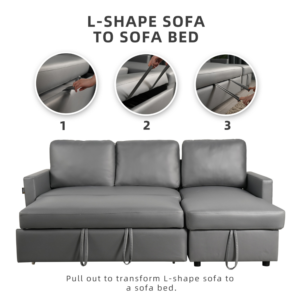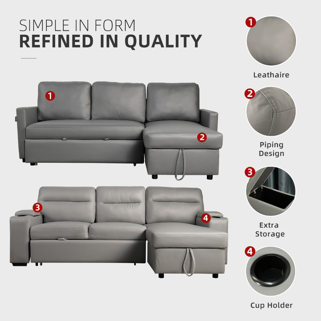 3 Seater TPU/Leathaire Pet Friendly Sofa L Shape Sofa Multifunctional Sofa Bed Cup Holder Storage Box