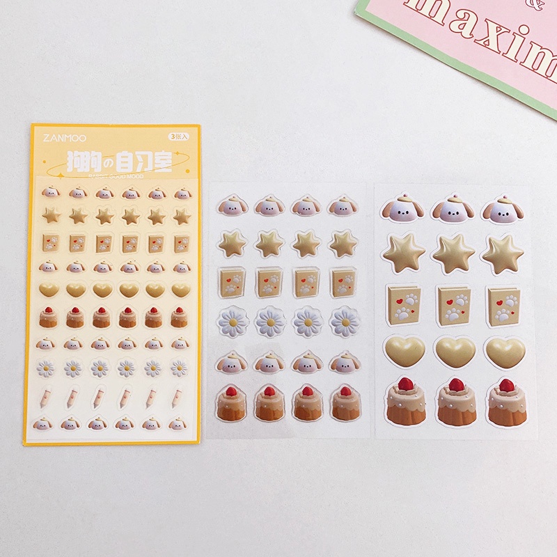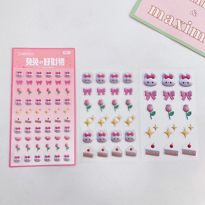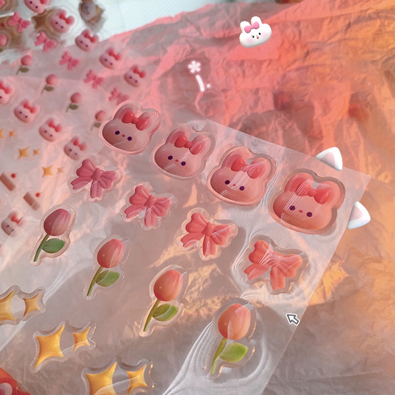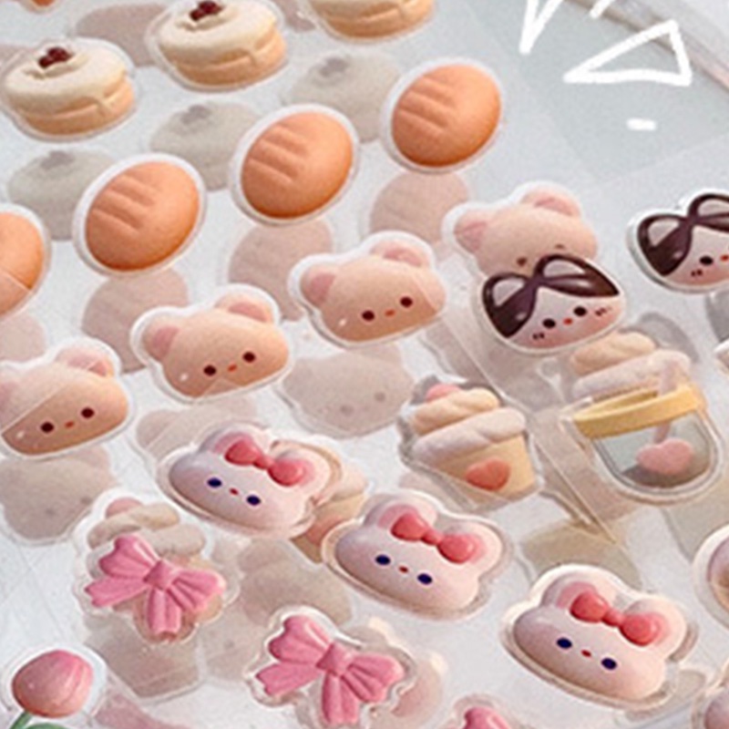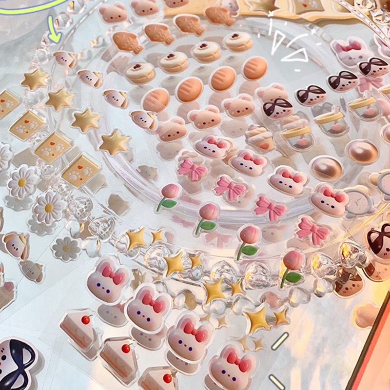 3 Sheets Cartoon 3D Crystal PET Stickers Pack Student Lovely Decorative DIY Stickers