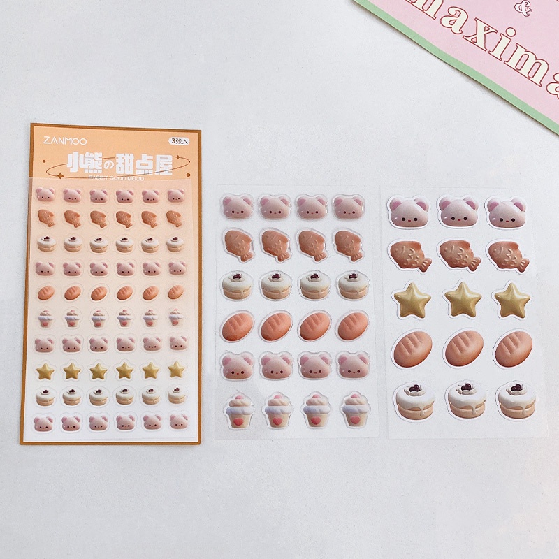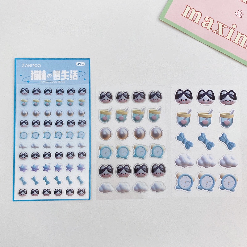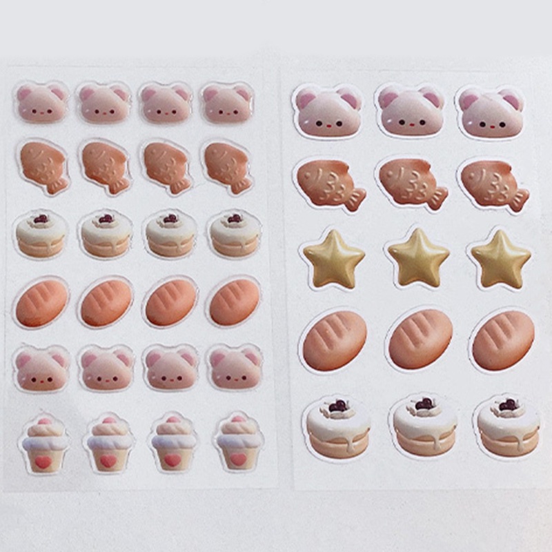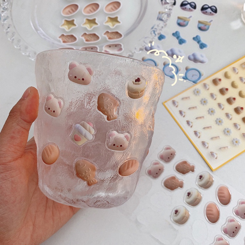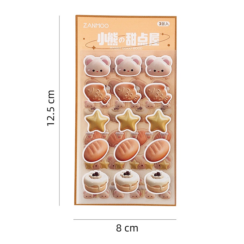 3 Sheets Cartoon 3D Crystal PET Stickers Pack Student Lovely Decorative DIY Stickers