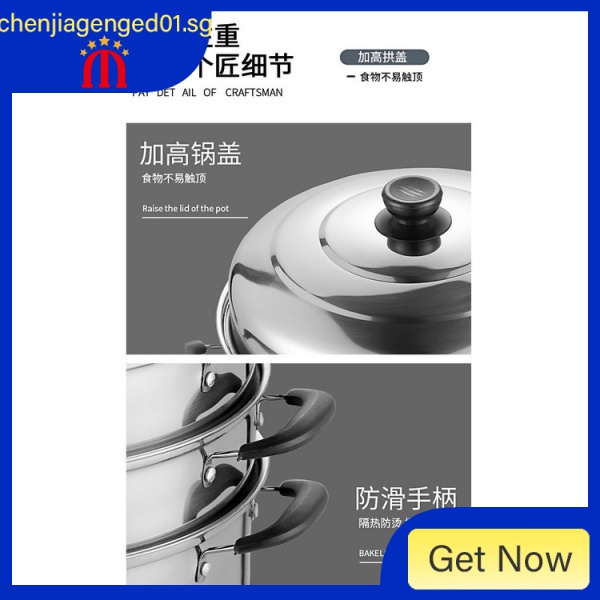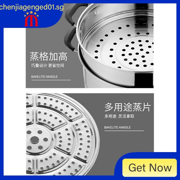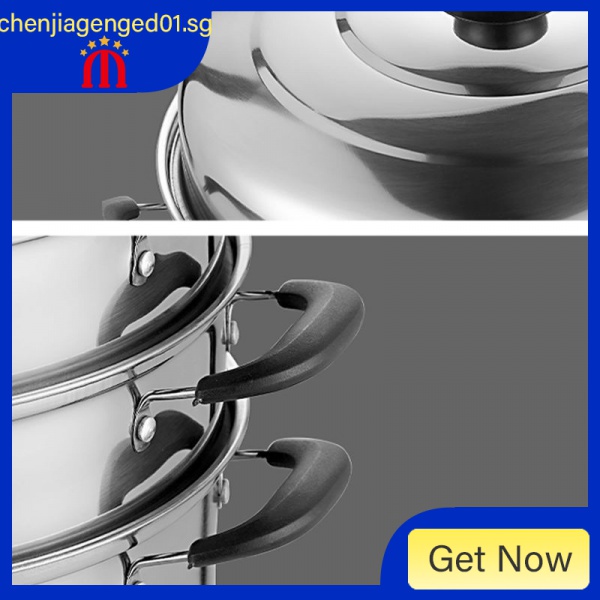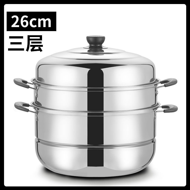 3-Tier 430 Stainless Steel Steamer Pot Steaming Cookware Saucepot with Tempered Glass Lid, Work with Gas, Electric, Induction Oven, Grill Stove Top, Dishwasher Safe LMTH
