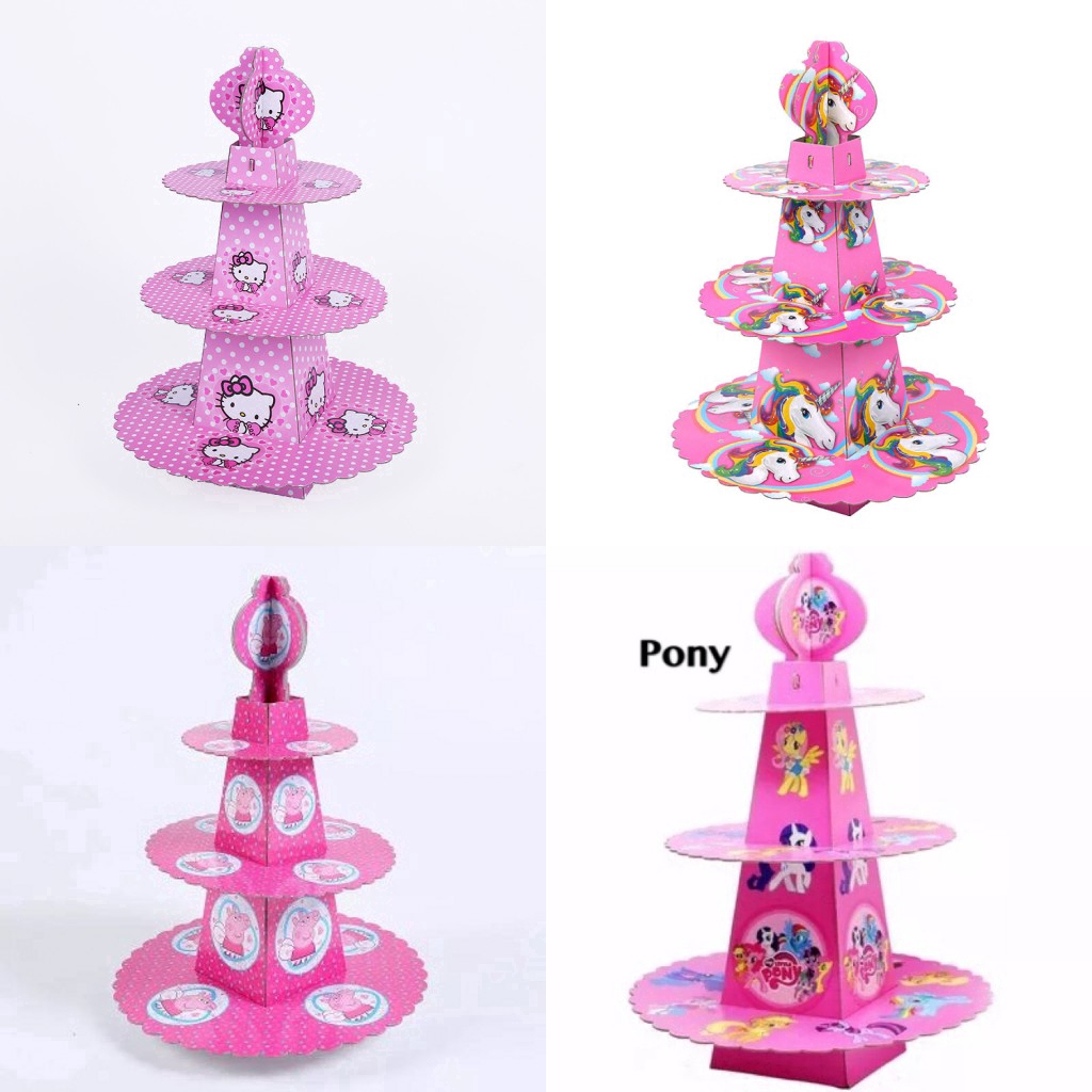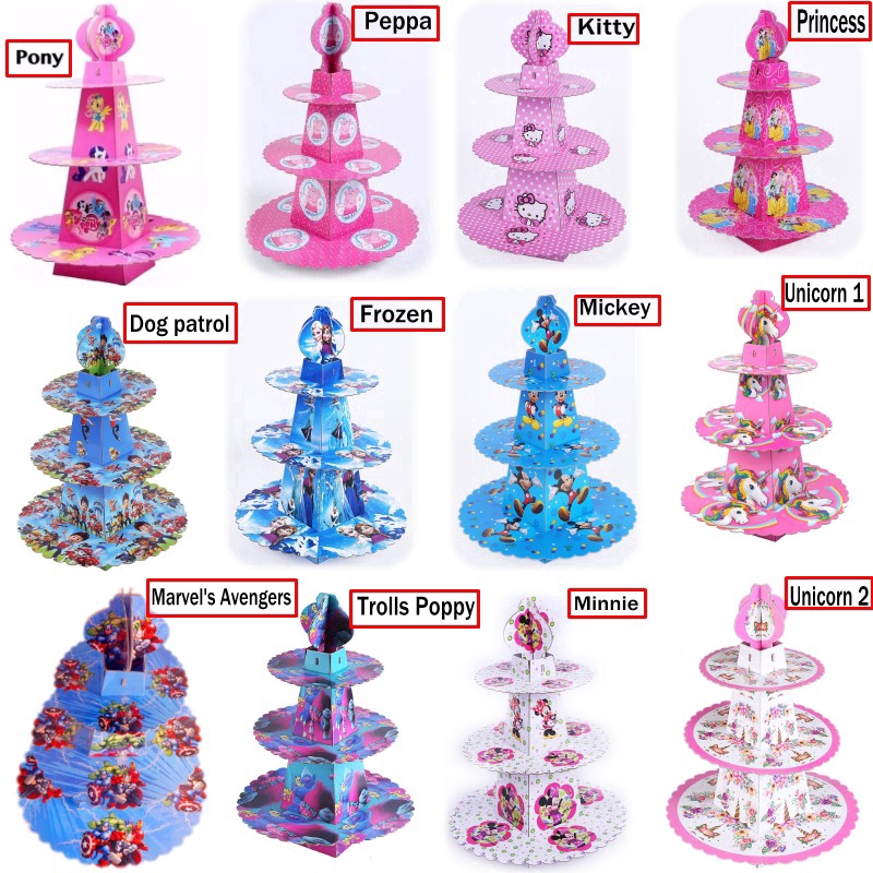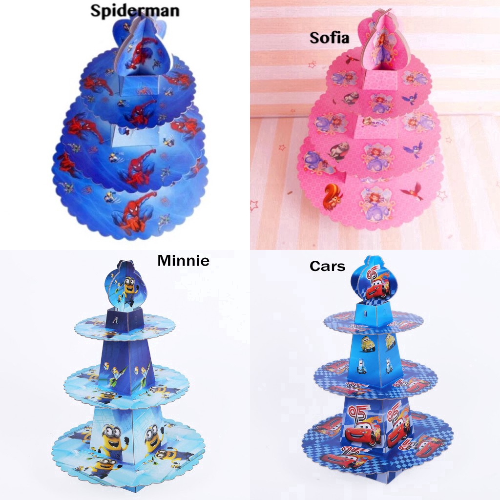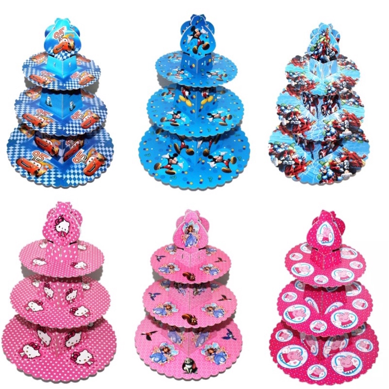 3-Tier Cup cake Stand Holder Cartoon kids Boy Girl Birthday Party Decorations
