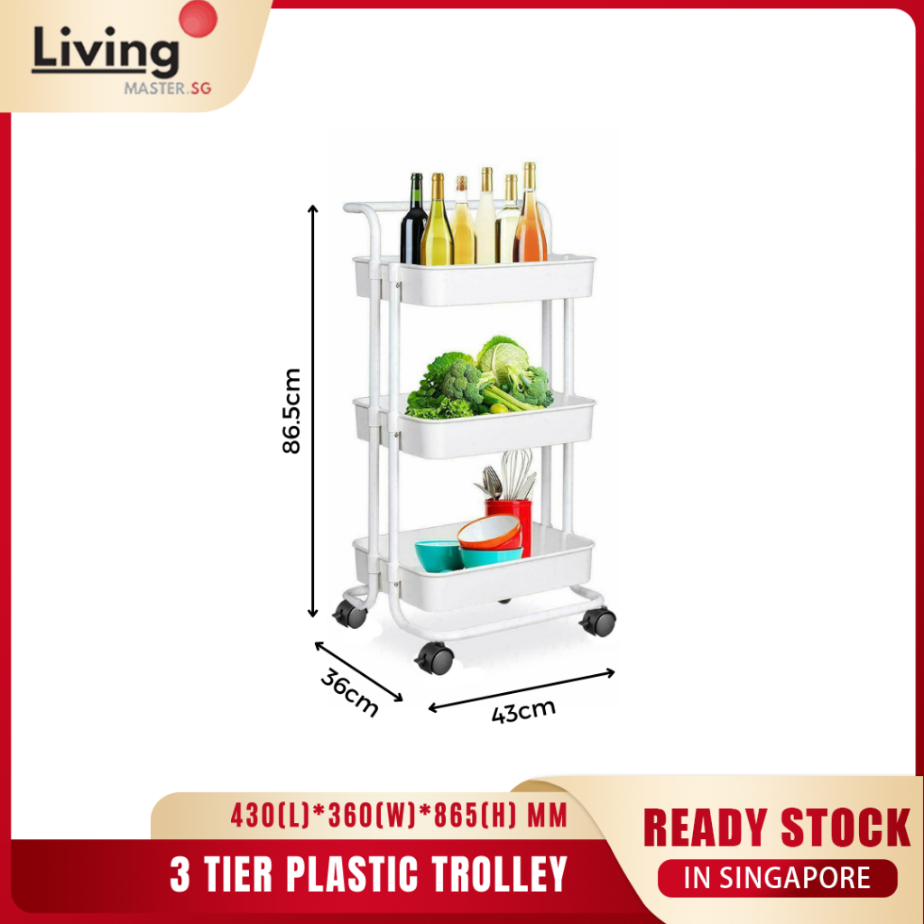 3 Tier Multipurpose Trolley Kitchen Storage Trolley ABS Tray With Wheels